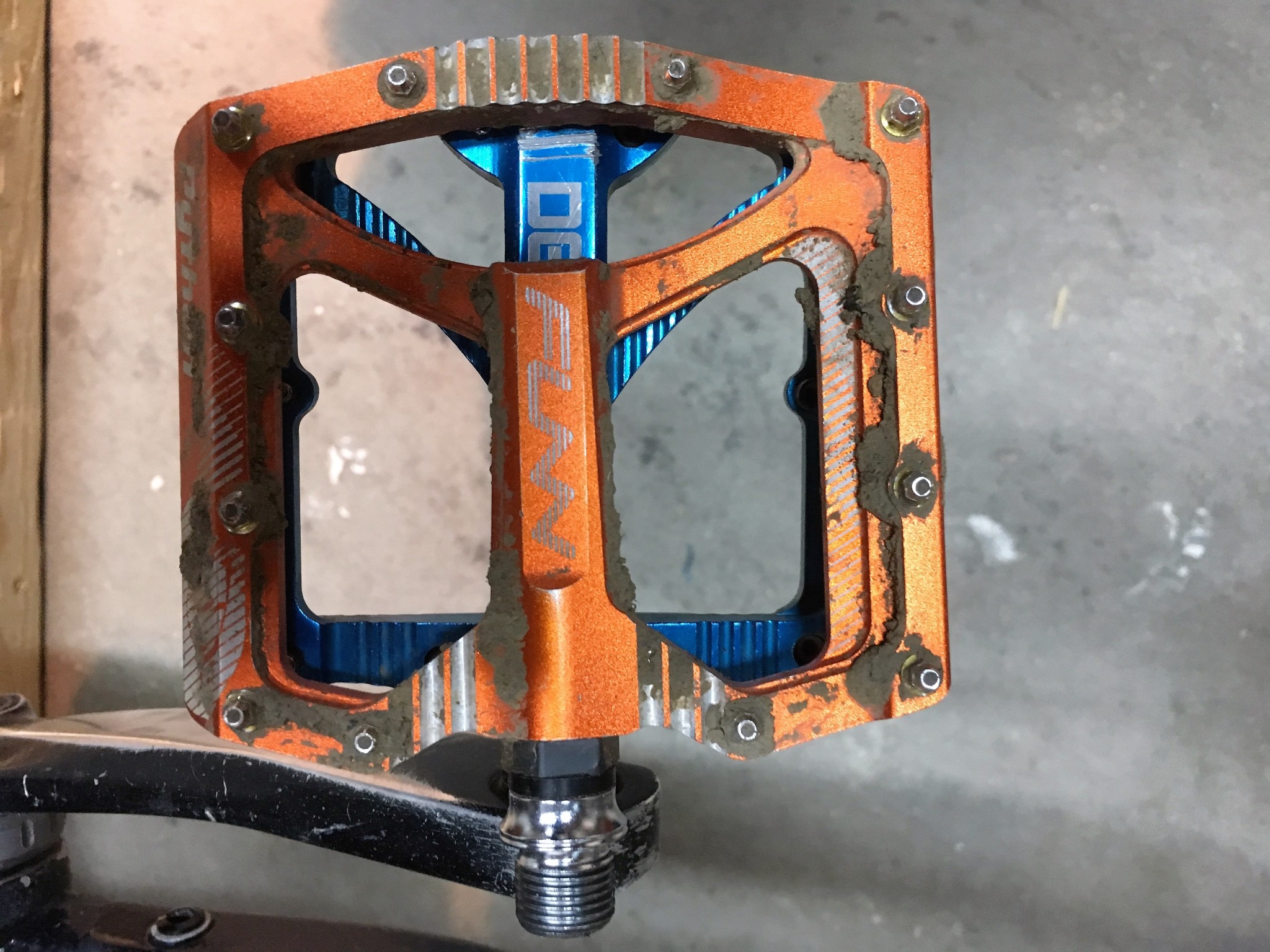 There are no pins located along or axle or in line with it at the outer edge of the pedal. The pedal has a thicker profile in the middle than it does towards the end, and the lack of pins here coupled with the slight rise in height underfoot gave this pedal a floaty feel. Float is a term typically reserved for clipless pedals whereby there is an amount of rotational movement where the cleat engages to the pedal. While some pedals have a firm attachment with little “wiggle room,” others allow more freedom of movement. Like most things, it's all personal preference, but these pedals often left us wanting more in this rating metric.