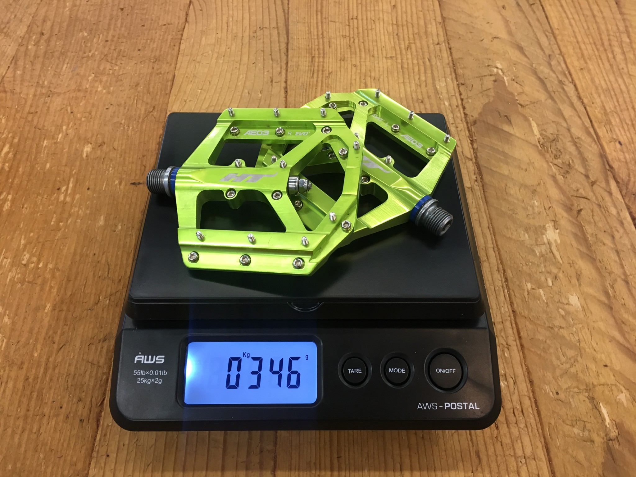 The HT AE03 sacrifices a little real estate in platform size in trade for its light weight. With aluminum construction and a weight of 350-grams, they are relatively light. That weight savings comes at a premium, however.