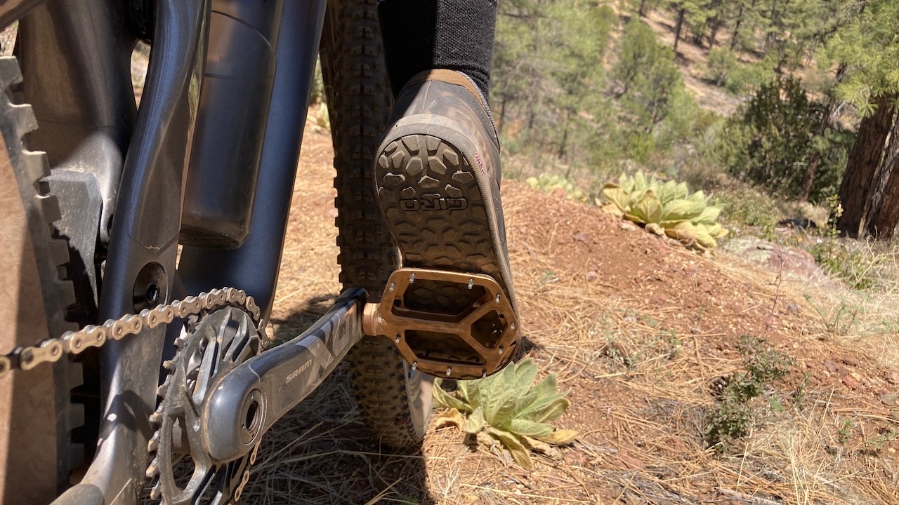 When first riding the pedal, it took a few moments to find the sweet spot, but once we did, our feet were firmly planted on the pedal, and the placement was easy to remember. We found we could feel more of the Atlas' pins through thinner and softer soles and prefer a shoe with a slightly stiffer midsole with them.