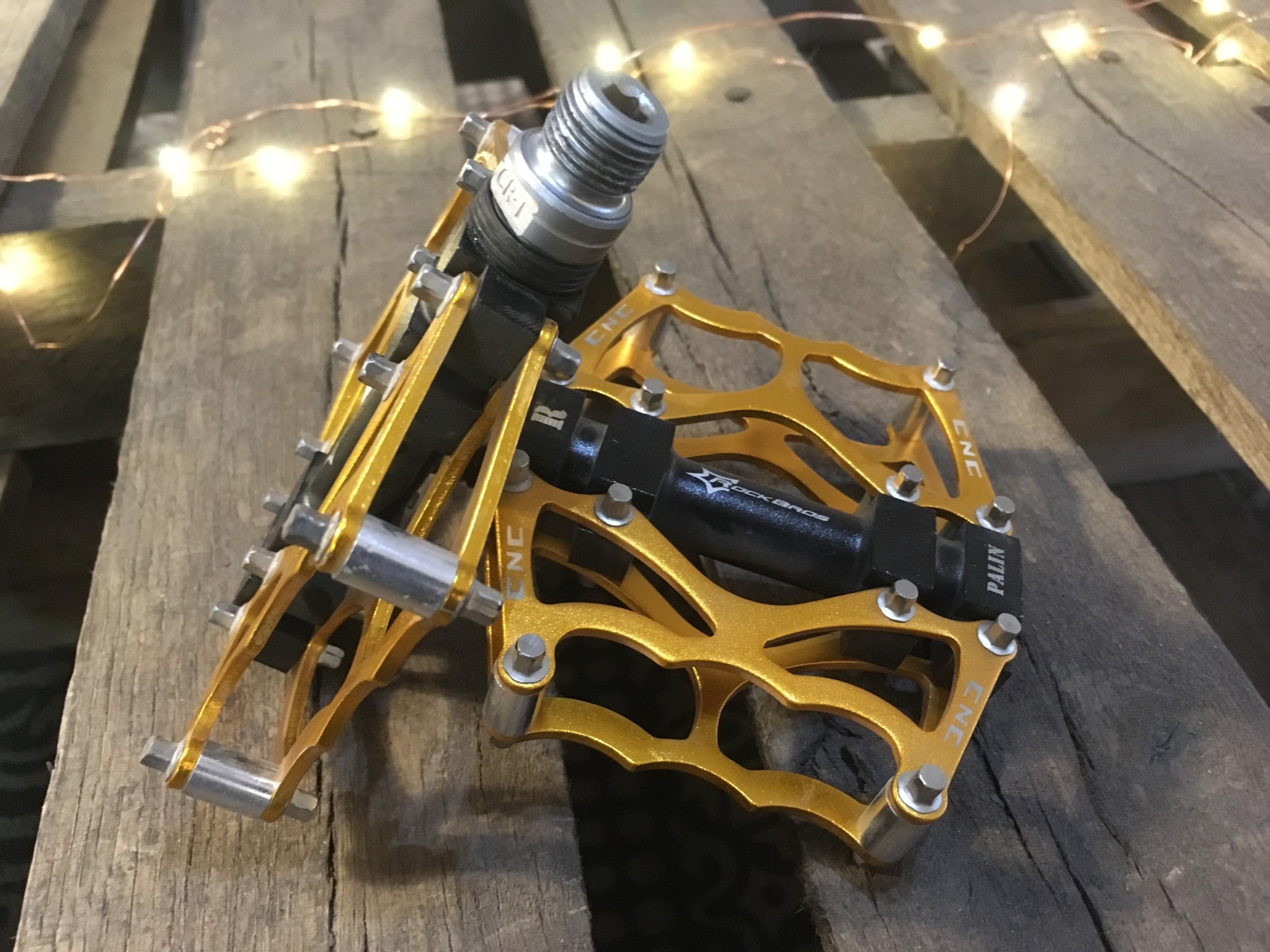 There are a variety of other pedals under the RockBros name and they all appear to share the same trademark build with the traction pins holding together the opposing sides of the pedal platform. They're all around $16-35. Amazon.com seems to be the place to find them.