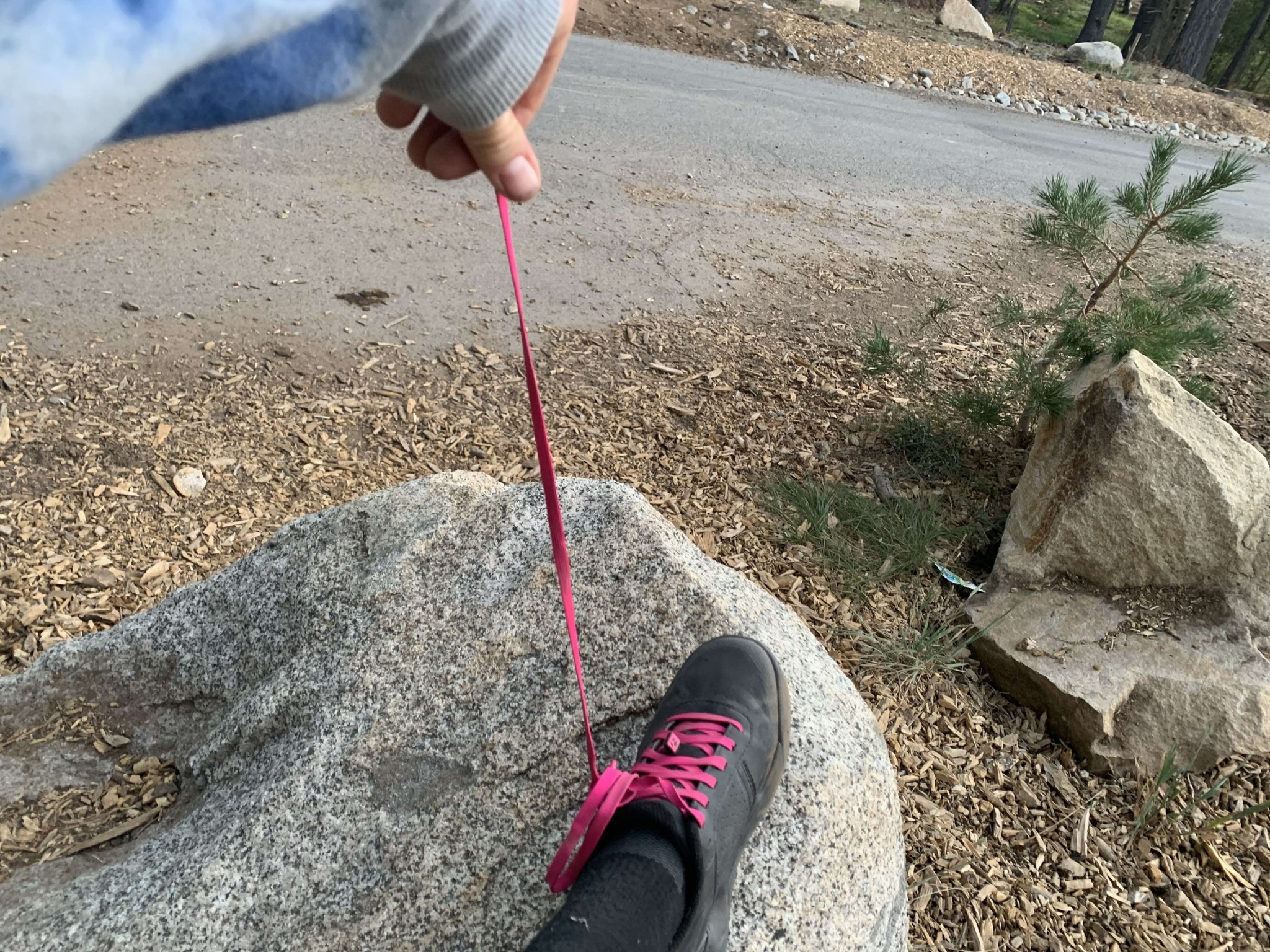Our biggest complaint about these shoes is the size of the shoelaces. Bontrager did provide an elastic strap, but they made it much lower on the tongue to accommodate the size of the laces. We think the shoe would be better if the elastic strap was higher and the laces were shorter. We also found that the laces stuck out quite a bit even when they were tucked underneath the elastic strap, leaving the potential to get caught in our chainring.