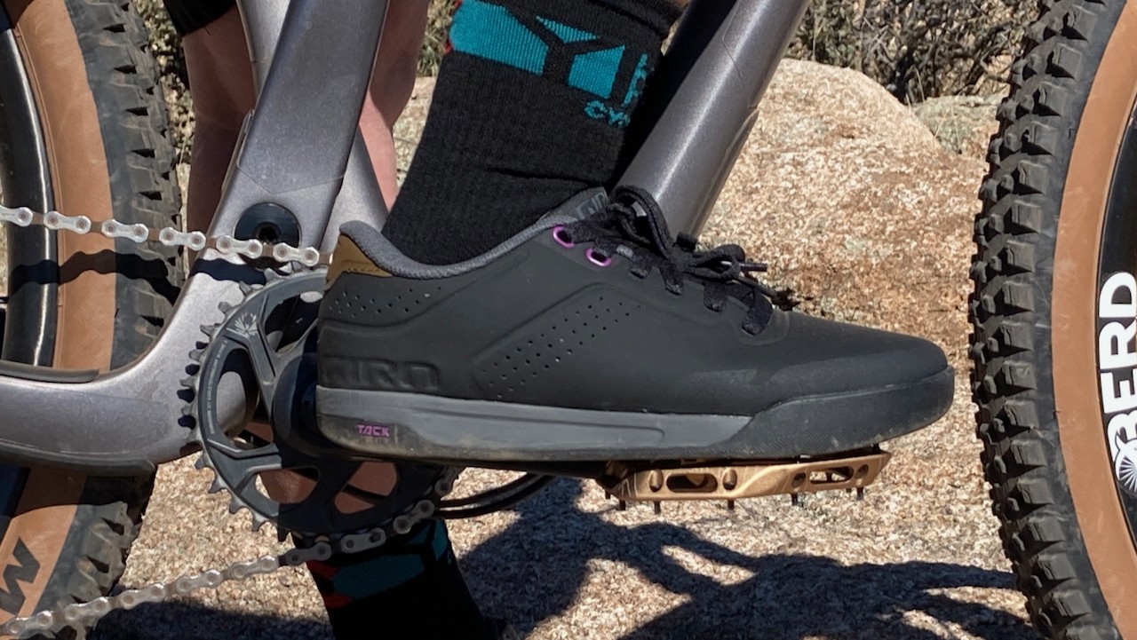 Giro worked with a team of engineers to design the Tack Rubber found on the sole of this shoe. This rubber is soft and provides a great grip on the pedals. We tested the Latch with four different flat pedals, which always had excellent grip. During our testing, we never experienced our feet slipping on when going up or down, and it was easy to plant our feet and find our sweet spot on the pedal.