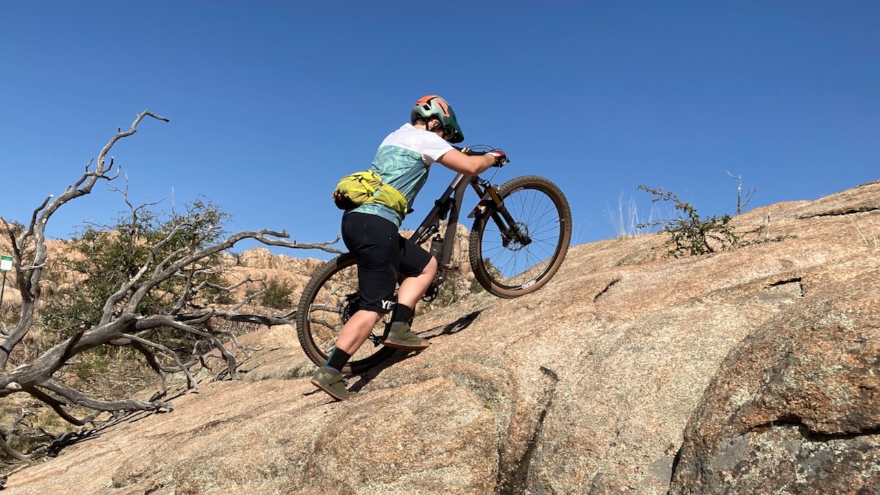 The shoe flexes slightly on the pedals without feeling soft underfoot and without losing the sense of where the pedal is. While standing up and climbing, there is never any slipping on the pedals, and our energy goes straight into the cranks. Our feet remain planted on the pedals, and the shoe absorbs the trail forces well on descents. On hike-a-bikes, the Wildcat remained comfortable, even while hiking up steep slabs, thanks to the flex in the forefoot.