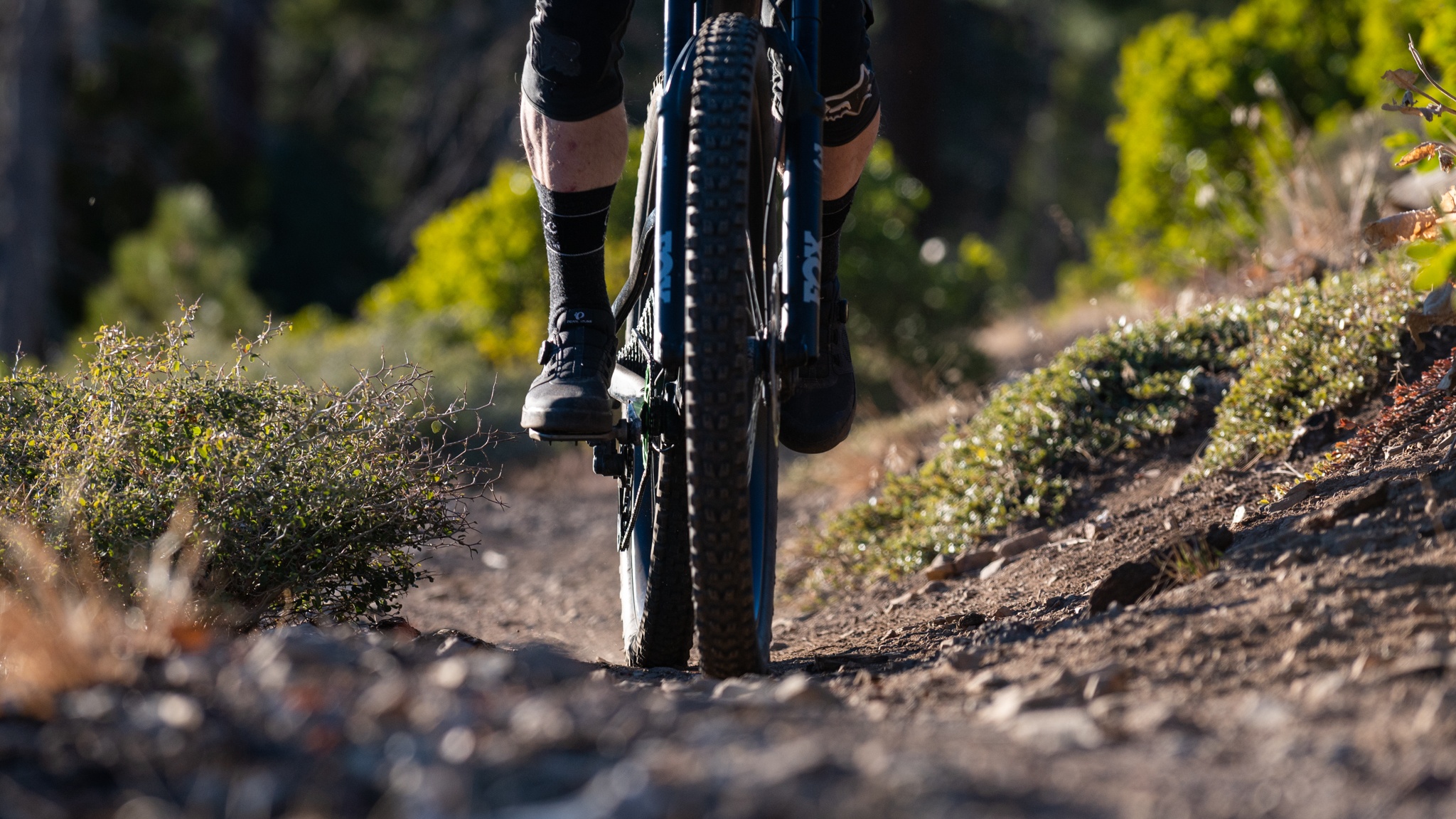The Goodyear rubber and chevron tread design make positive contact with the pedal pins and provide average levels of grip. When fully weighted, we found that our shoes clung to the pedals and weren't prone to slipping or blowing off. Unlike the grippiest shoes we tested, however, our feet didn't feel quite as glued to the pedals or locked on. This was most noticeable while climbing when it was easy to accidentally pull the foot off the pedal when powering through techy sections. Likewise, our feet didn't feel quite as secure on the descents when rattling over chunk as they did with grippier models. We think the stiffness of the soles has something to do with this, as they felt more prone to getting bounced than models with a little more give or flex. The shallow tread depth and sloped edges of the chevrons also don't seem to grab a hold of the pins as well as some other designs. On the flip side, we found making small adjustments to the feet to be relatively easy and didn't require as much unweighting as other models.