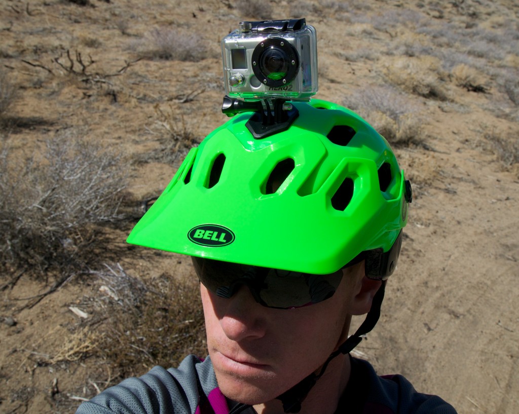 The Super also comes with a GoPro mount, which is essentially a plastic plug that fits perfectly into one of the vents on tops of the helmet. The mount is secured in place by small velcro tabs which attach on the inside of the helmet. During out tests the mount stayed put, but we did notice a tiny bit of extra camera wiggle as opposed to a regular adhesive mount. Using the included mount is probably the best option for the Super since the vent pattern limits the placement options for adhesive bases to be mounted.