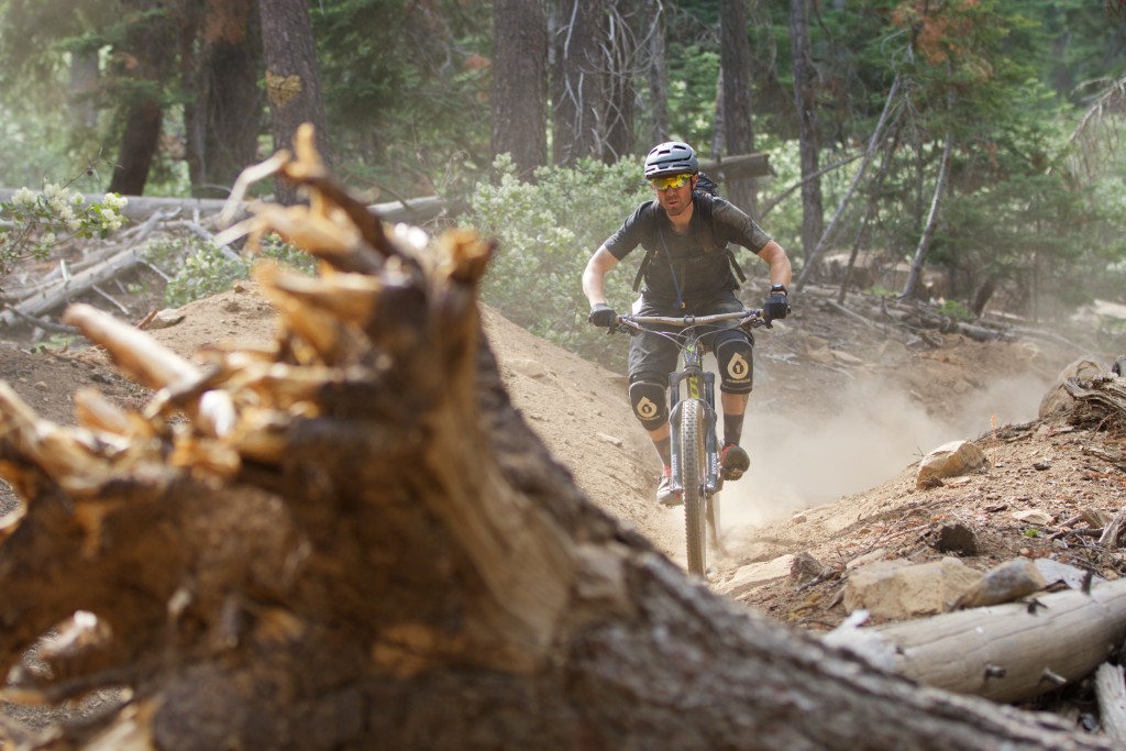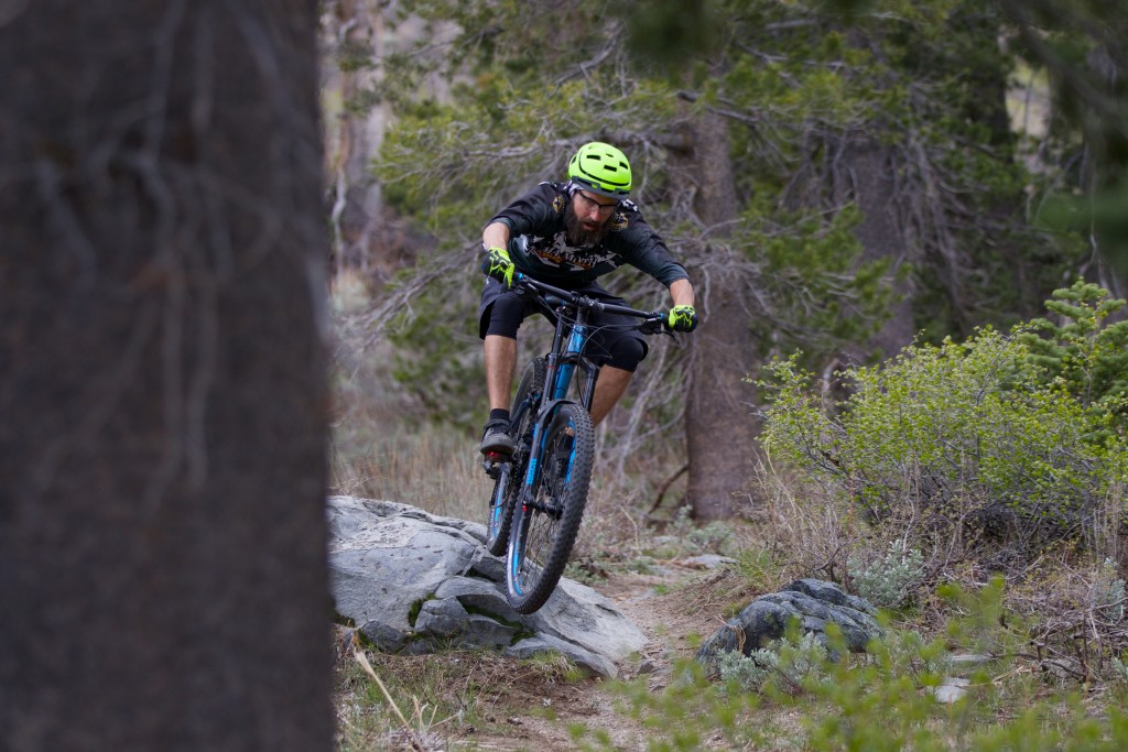 Lead mountain bike tester Karl Anderson protects his dome with the Smith Forefront while evaluating the Trek Slash 7 in Mammoth Lakes, CA. Credit: Luke Lydiard