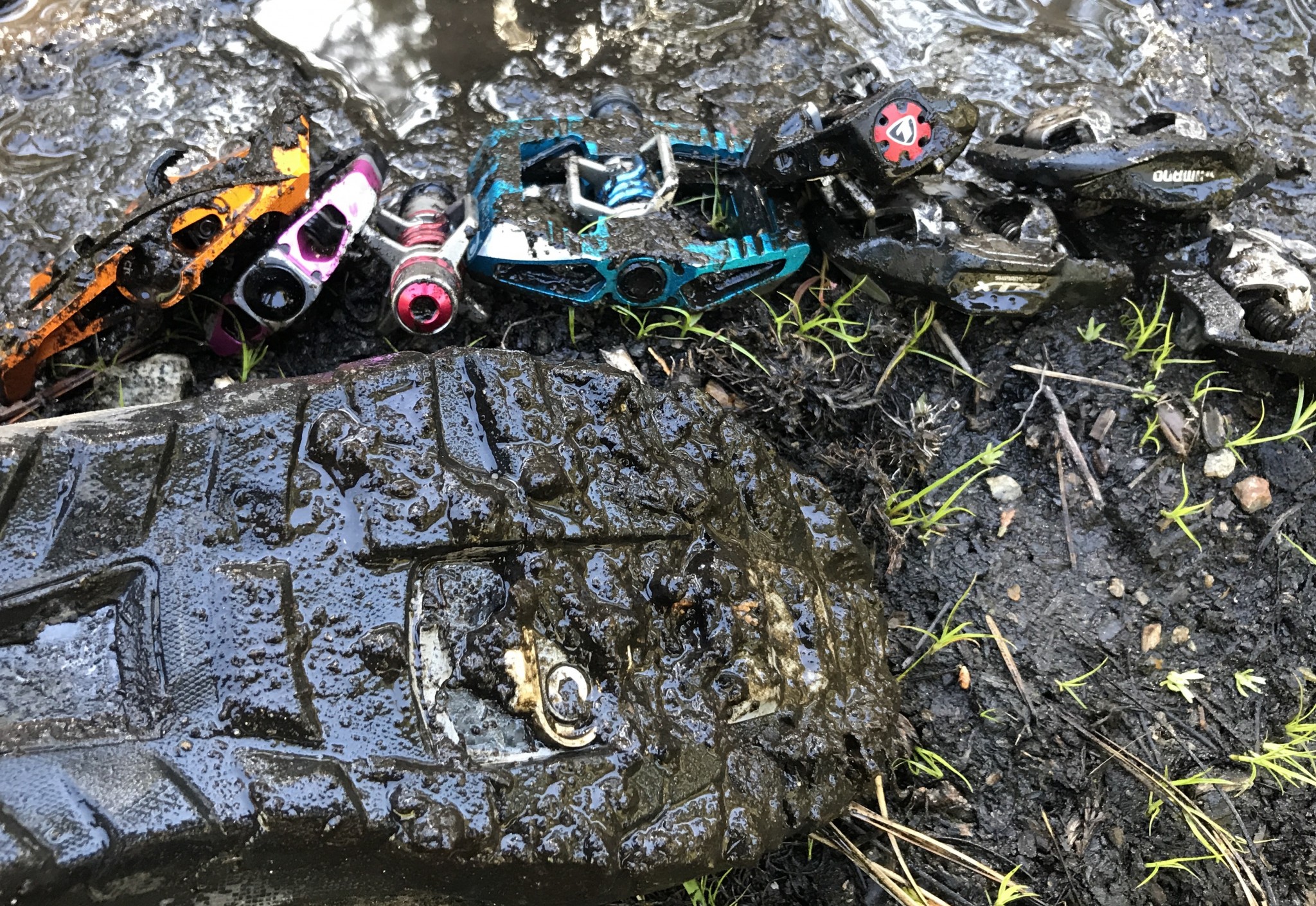 The internals of this pedal are legendary for their resistance to packing up with mud, the addition of a platform only slightly diminishes its prowess in the foul weather. The Mallet E clearly outperforms the Xpedo GFX in this category repeatedly resisting our attempts at choking it with mud.