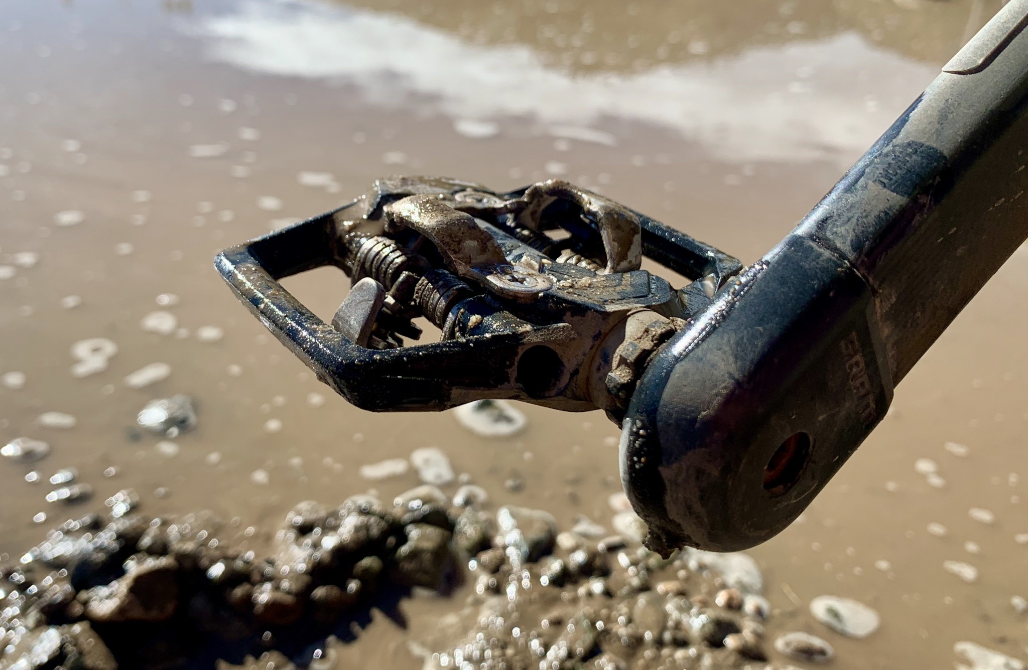 The moderate size cage and painted pedal body is prone to holding more mud and slop than its more expensive siblings, but the ME700 manages reasonably well. The SPD mechanism isn't overly prone to getting jammed with mud, and the relatively open spacing of the fore/aft sections of the cage clear mud relatively well.
