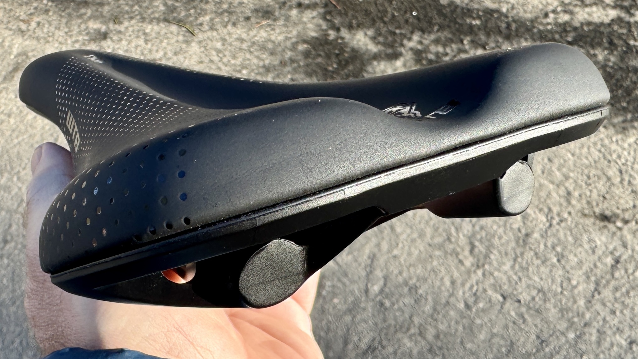 The general shape of the Volt gives it an advantage. Using what WTB calls the Love Channel, that V-shaped groove down the center reduces the pressure on your sensitive areas and allows your mass to rest on your ischial tuberosities. This design language has become more ubiquitous over the years, but WTB also uses a cutout where the V approaches the nose. While supple deck material is quite nice, this area uses no deck material and allows the padding to push into the recess.
