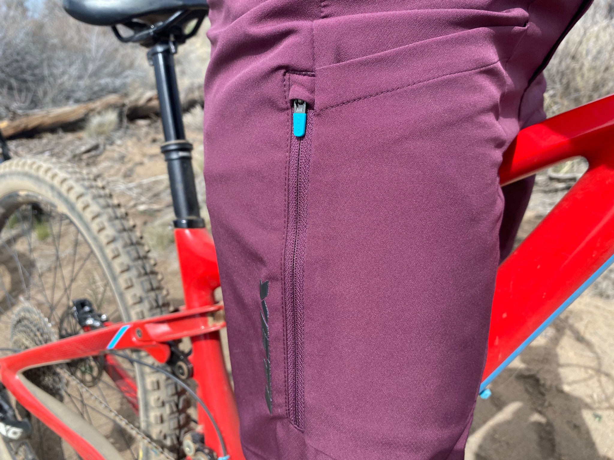 Yeti uses 2-way stretch material throughout the Norrie, with meshed lined pockets. The material is quiet when pedaling and flexes perfectly with each pedal stroke. The inside of the polyester is a soft, almost fleecy material that glides really well and keeps the legs from riding up.
