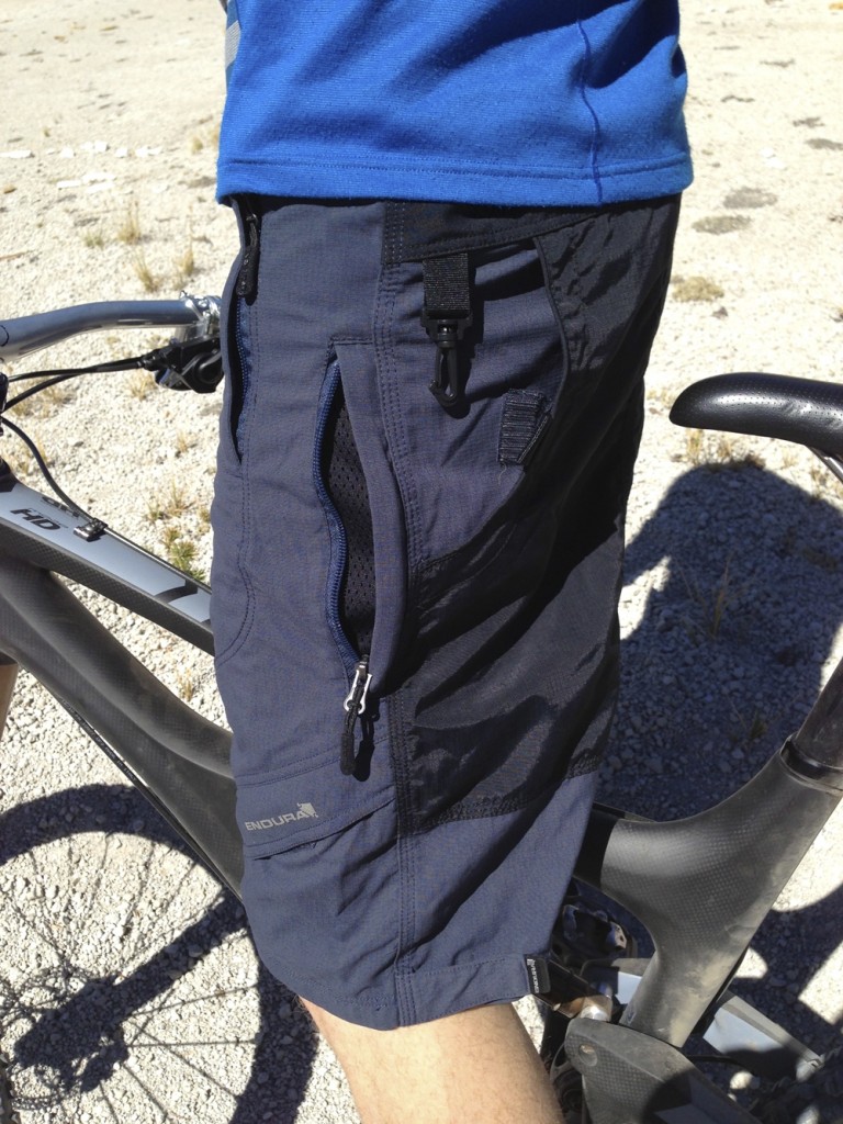 This short has every feature out there. There are a total of six pockets: two zip hand, one zip cargo, one flap cargo, and two huge rear pockets. We like pockets, but we could do without the rear pockets which Endura calls “map pockets.” These are made from a second layer of sleeker ripstop and close with a small velcro tab. Rear pockets aren't that functional on a bike short, and these are likely to snag on the saddle when getting gnarly.