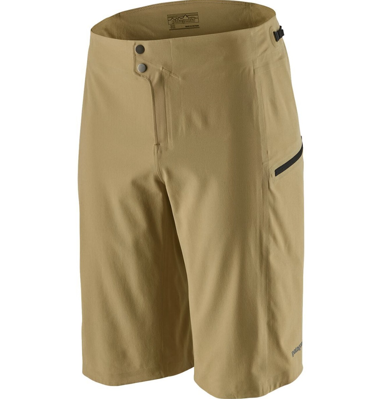 In typical Patagonia fashion, the Dirt Roamer shorts have a subtle and timeless style that looks as good off the bike as it does while you're riding. You'd be hard-pressed to identify them as mountain biking shorts if you didn't already know they were. The only thing that might give them away is the sonically welded seams throughout their construction. Otherwise, they have a casual style with a solid color scheme, two zippered thigh pockets, and a small logo on the side of the left knee. With a tailored slim fit and an inseam that hangs right to the middle of the kneecap when standing, these shorts look right at home running errands around town or stopping for an apres ride beverage at the local brewery. They come in three solid color options including the Moray Khaki we tested.
