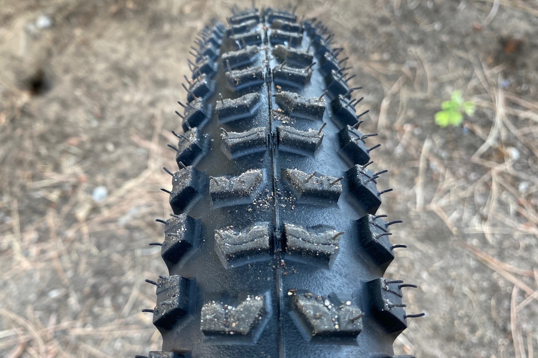 The larger size of the lugs on the center tread really offer an excellent bite. Traditionally, ramped or sloped center knobs can be detrimental to braking force. That said, we didn't find that it mattered all that much with the Kaiser. When it was time to hammer on the brakes, they engaged and we were able to control our speed without breaking into a skid too easily. The relatively wide center knobs have a large contact patch and horizontal siping in every other set really helps the knobs flex into the soil.
