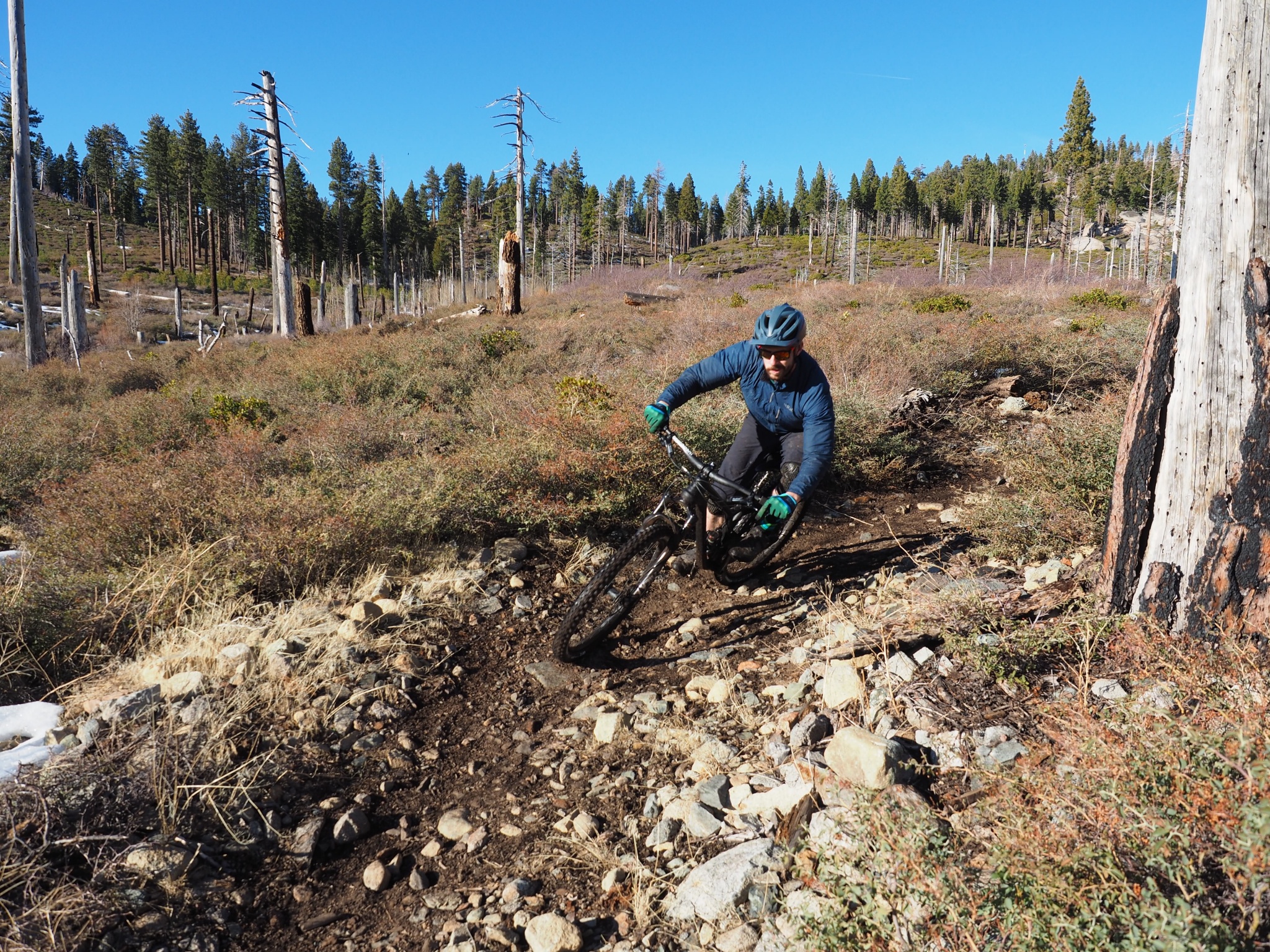 This tire delivers killer on-trail performance. We rode this tire in every condition from bone-dry, deep dust to hero dirt and it delivered. This was one of those tires that inspired reckless speed and loose riding because you knew it had your back. When leaning into corners you could really feel the shoulder tread bite into the trail surface. Given the square shape of this tire, it is quite easy to feel when you were on the edge of control. Rounder tires can have a little bit of a vague feeling when you are leaning them over. Tires with a more square profile deliver a very precise limit. The transition from the center knobs to the shoulder is smooth, there is no twitchiness or stuttering. If cornering abilities in a variety of conditions are a chief concern, the Wild Enduro Front is a tremendous option.