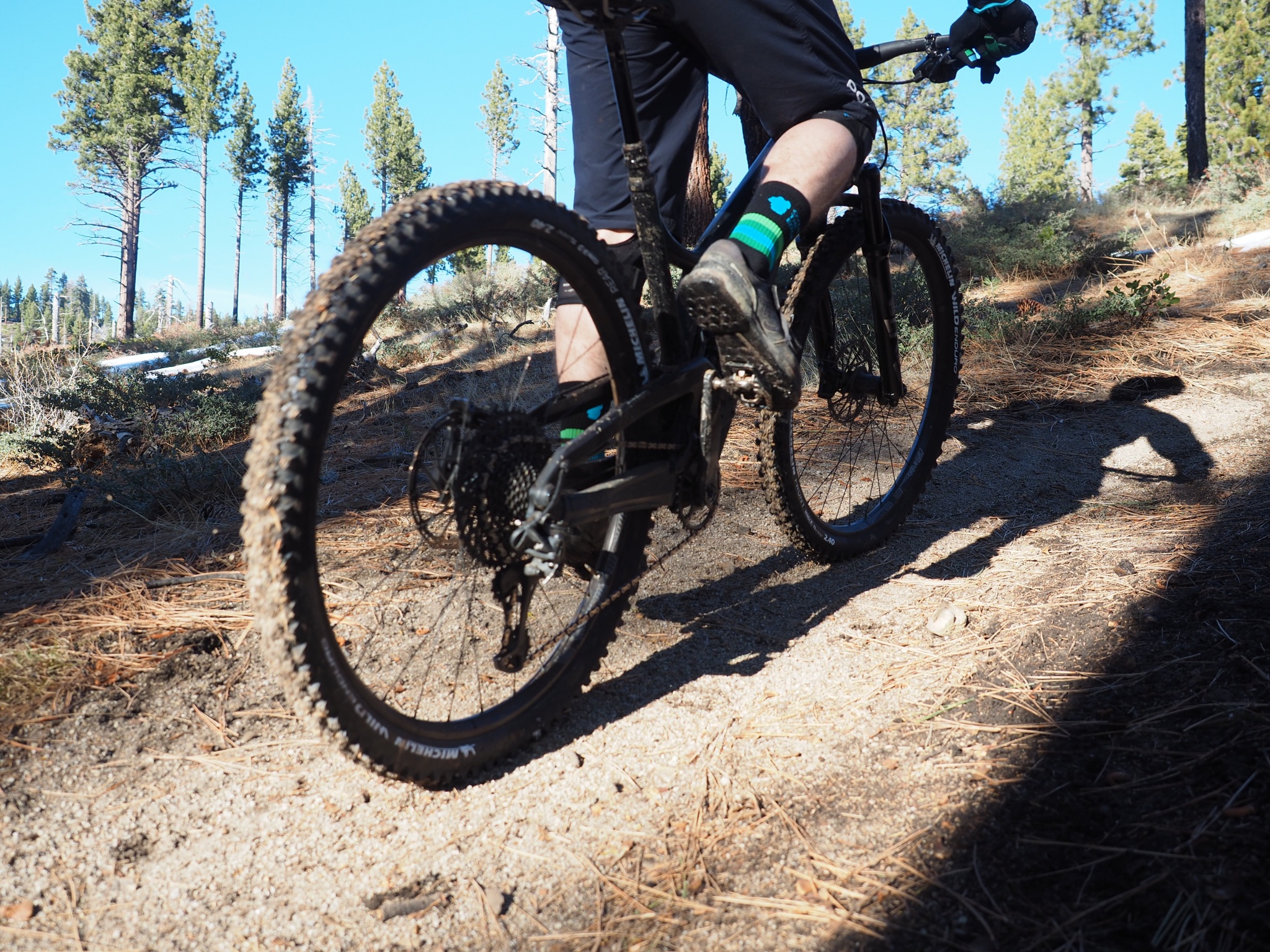 When you are standing up through a sandy, dusty, climb, you can feel the tire really grab the trail. Less aggressive tires with lower profile tread designs have a tendency to spin out on these surfaces, but the Wild Enduro really shines. When standing up on rocky, sandy, hardpack, loose-over-hard, pretty much any surface, this tire has excellent climbing traction