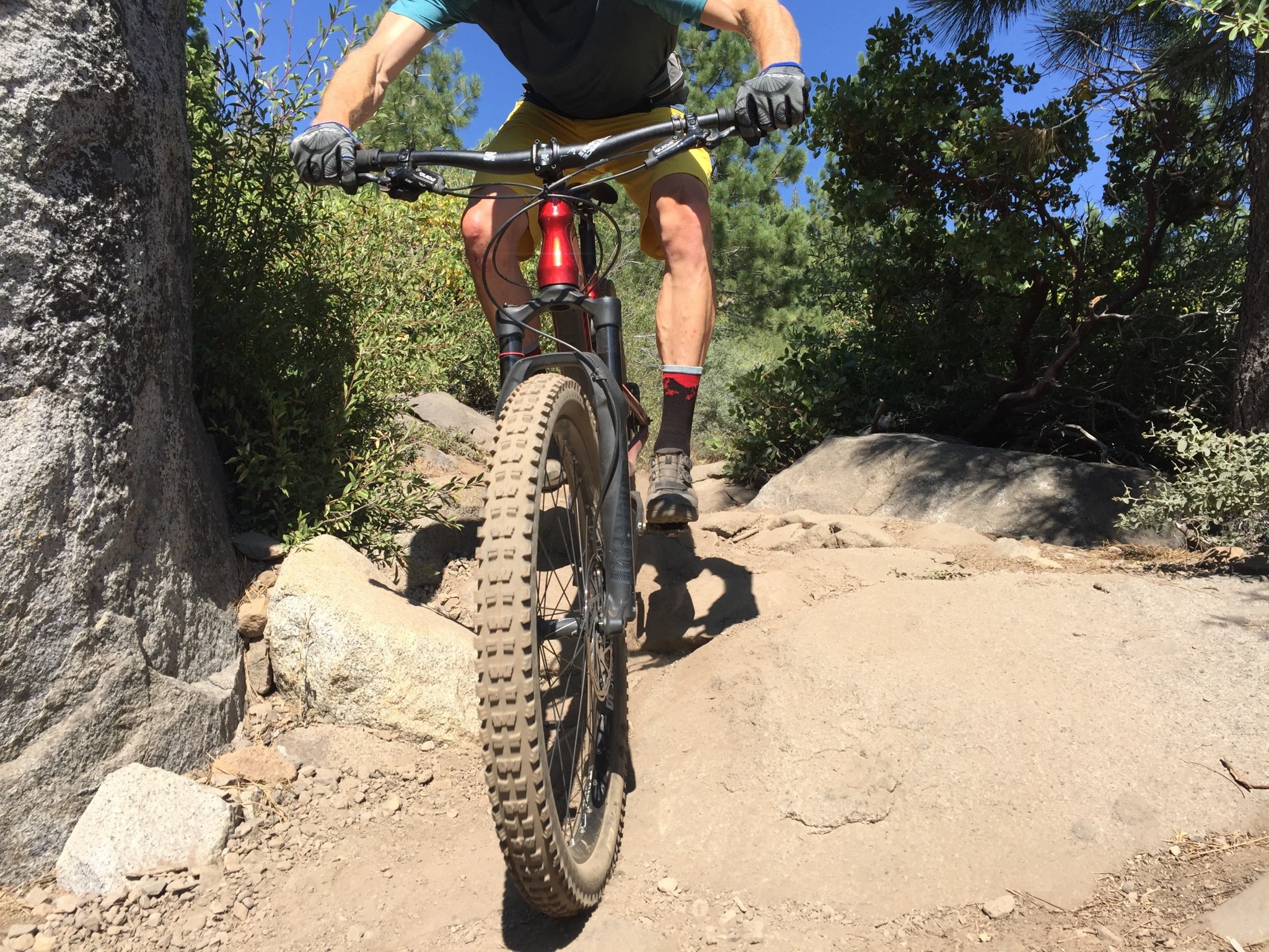 The Butcher Grid provides a high level of braking traction. The tall knobs with squared-off edges are eager to bite into the ground, and performed well even when braking in loose or sandy conditions as a result. The addition of sipes on all of the knobs further enhances the braking traction, especially on firm surfaces like hard-packed dirt or rock. All of the knobs are stout and feel well supported, and hold strong under braking forces as opposed to folding or squirming, even the side knobs as long as you are running a high enough tire pressure.