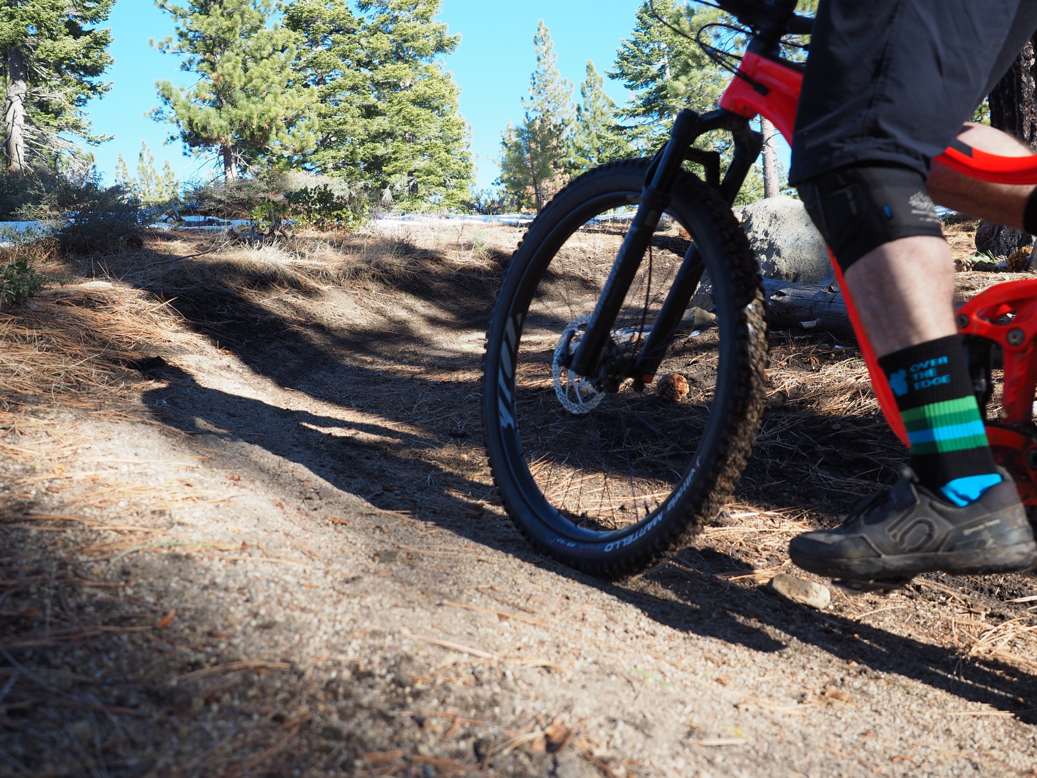 This tire really rails corners. On most surfaces, it hooked up exceptionally well and allowed us to carry maximum speed. Even on looser surfaces, this tire handled fine. It wouldn't be our top choice for the deepest, dustiest, rutted corners. We would suggest looking towards some of the beefier and chunkier options. In addition, if you are working through chattery, rocky corners, we might suggest something a little more substantial. We have little concern about this tire mounted on the front wheel. However, the Trail casing is too thin for use on the rear tire if your trails are rockier or rough. Vittoria does offer a more robust, and substantially heavier casing called the Enduro/EMTB casing. This would be far better suited for dragging brake through nasty corners.