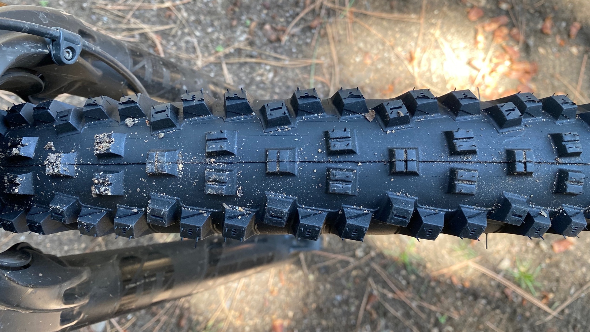 The relatively tall and squared-off kobs combined with ample spacing works really well in loose conditions. The spacing allows each knob to settle into the surface while the knob height and squared-off edges claw very effectively into soft soils, loam, dust, etc. In chunky dirt, technical rock gardens, or tangles of roots, the spacing and size of the knobs also do a great job of grabbing a hold of edges as you tractor your way up the mountain.