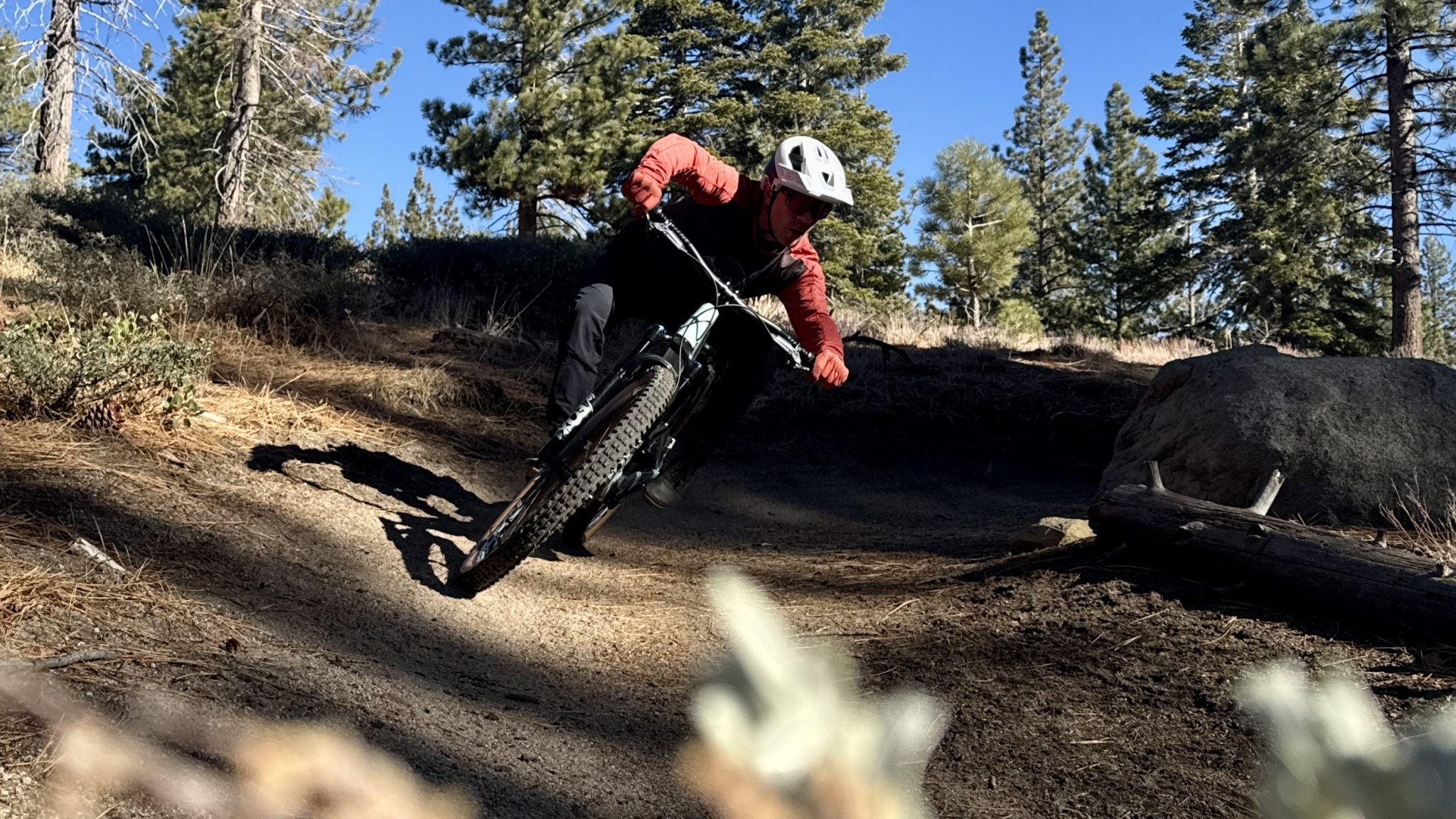 Behold the ERA, a lightweight, snappy, and compliant wheelset that seriously enhances control. Unlike the Industry Nine Solix wheels, you're not struck over the head with how spry and lightweight they feel on the first pedal stroke. The ERA wheels have a subtle, muted feel that slips through rock gardens without that pinballing effect stiffer wheels suffer from. We ran the same tires at the same pressure throughout our wheel testing but ended up checking the pressure in these wheels more often as they felt softer and seemed to be quieter in the chunky places. Our testers all agreed that the ride quality was near perfect and had problems coming up with any criticism. They accelerate quickly and feel incredibly precise without ever feeling too harsh or direct. You can dive into a berm or hard corner without discernible flex, then launch into a chunky line and feel the sublime effects of lateral deflection. We loved how calm the cockpit felt with these wheels mounted.