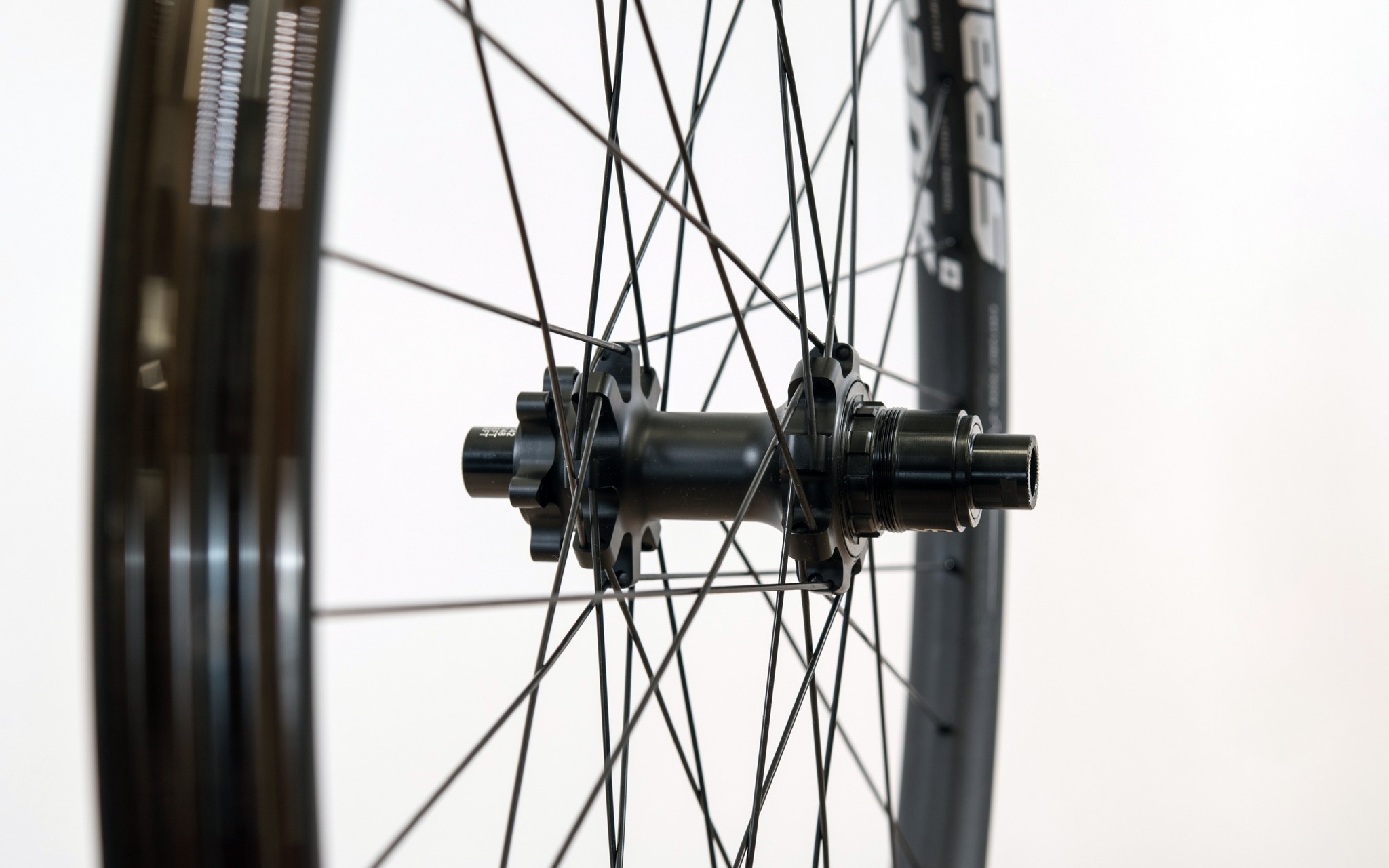 The hubs are also made by Spank and are beautifully machined aluminum affairs with spoke flanges milled for the 32 straight-pull stainless steel triple-butted spokes arranged in a 3-cross pattern. These spokes are attached to the rim with Alloy DSN nipples which are slightly longer than regular nipples. The freehub system consists of a 30-tooth drive ring and a 3-pawl system that results in 12-degrees between engagement points. They have a standard 6-bolt brake rotor mount.