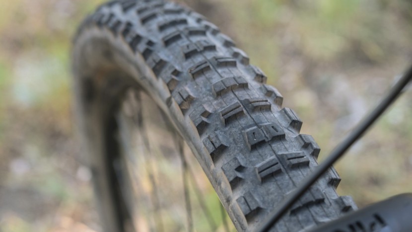 Our Meta TR was outfitted with a Maxxis DHR II 2.3-inch tire in the front. While there is definitely sufficient bite with this tire, wider rubber is better. A 2.25-inch Maxxis Ardent is mounted to the rear. The Ardent is miserable in loose-over-hard conditions and any scenario involving moisture. In addition, a 2.25-inch tire has no place on a trail bike in this day and age where 2.5-inch rubber is commonplace.