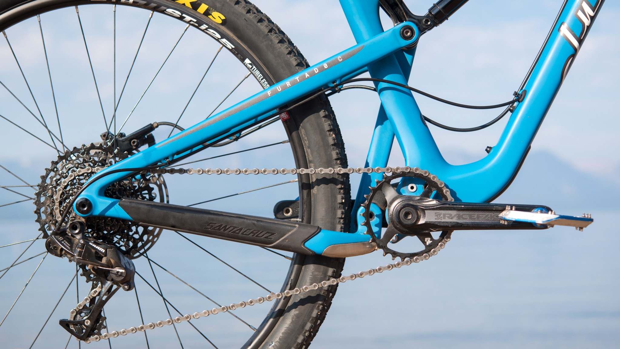 - Crankset — Santa Cruz gets a 32-tooth chainring up front, giving the 5010 stiffer gearing than the 30-tooth Furtado. They both have 10 to 42-tooth cassettes. The 30 to 42-climbing gear ratio makes far more sense for a trail bike, which presumably values easy climbing.
