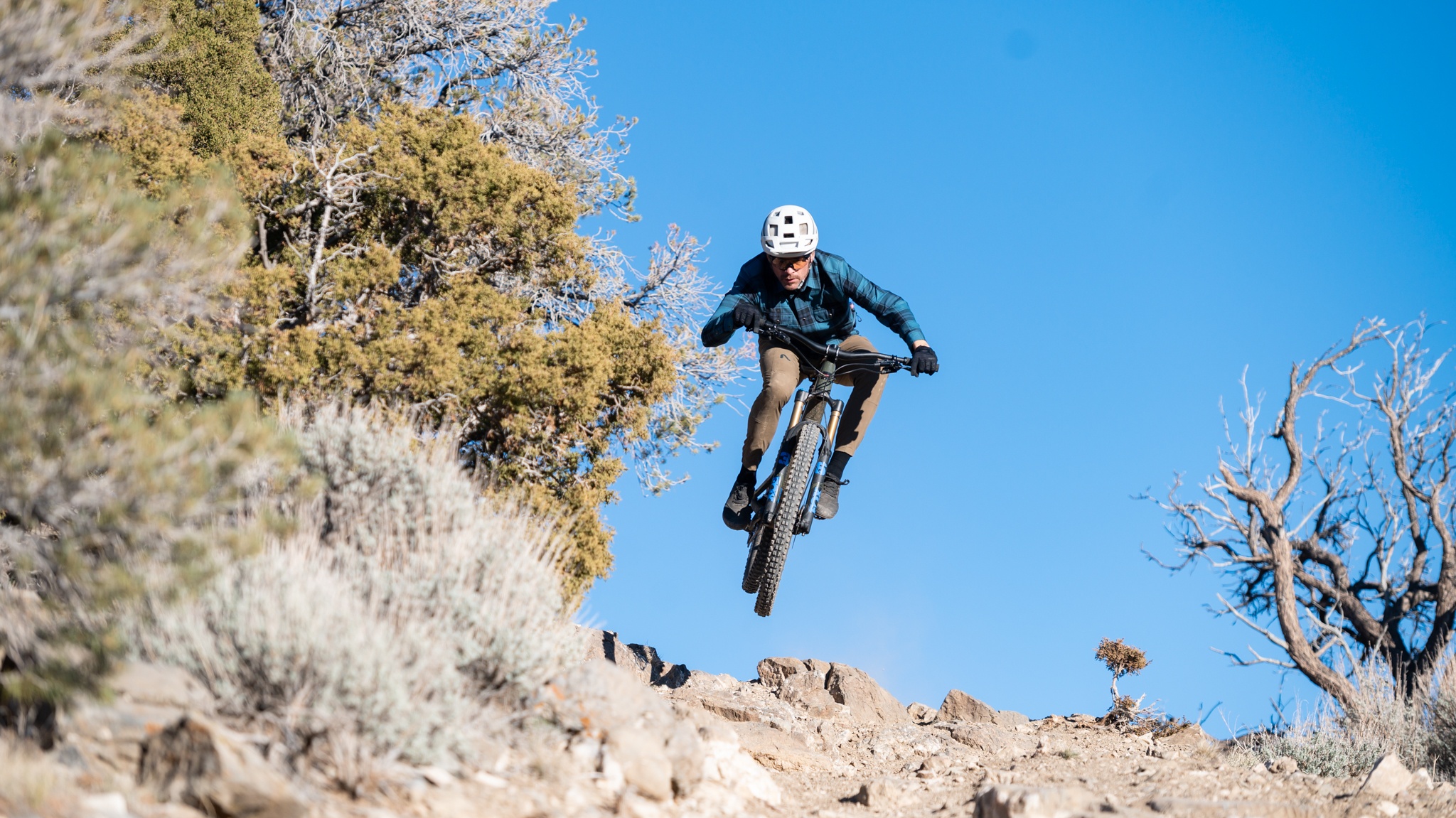 Mullet hairstyles may not be quite as common as they once were, but mullet bikes have steadily been gaining popularity for the past few years. When it came time to update the Bronson, Santa Cruz made the somewhat bold move to mixed wheel sizes. It may not be a Hemi, but we think Joe Dirt might still say “Daaannngg” when he saw it. The switch to mixed wheels (MX) along with an updated geometry have made the new Bronson more confident in aggressive terrain while retaining the versatility and maneuverability of its predecessor. With 150mm of rear-wheel travel paired with a 160mm fork, it fits squarely in the aggressive trail travel bracket, and the added length, slacker head angle, and mullet wheels have done wonders to enhance its downhill prowess. We found the Bronson to get better the harder you push it, with great stability at speed and composure in steep and rough terrain. The 29-inch front wheel provides a business-minded approach, while the 27.5-inch rear wheel keeps things lively and fun. Steep, skiddy trails and slashy corners were where we felt the Bronson excelled, but it proved to be tons of fun on moderate, flowy terrain as well. While it may not be most supple, the VPP suspension design performs better than most on bigger hits and provides a supportive platform to push off when popping side hits or blasting out of corners. Like most Santa Cruz bikes, it has a very calm pedaling platform that renders the climb switch nearly useless, and it proved to be an efficient climber capable of tackling anything we put in front of it. It isn't necessarily the fastest bike up or down the mountain, but it does strike us as one of the most fun we've tested in a while.