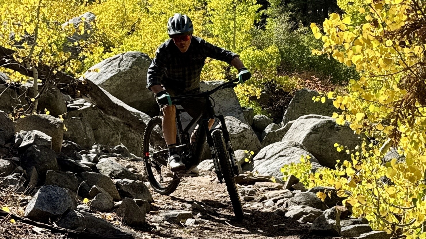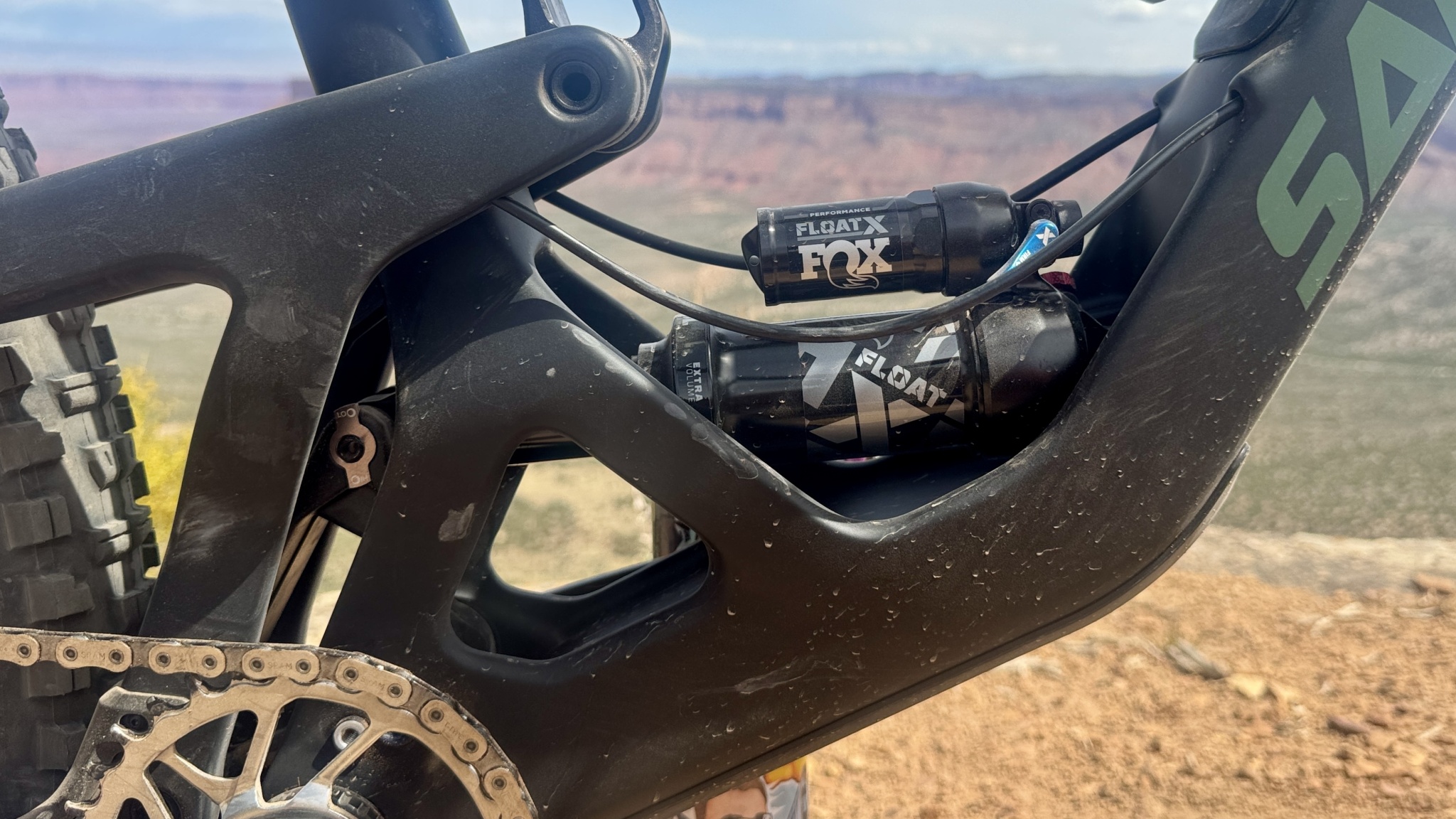 With its low center of mass and a fair amount of overlap in the front and rear triangles, the linkage exhibits minimal torsional flex. This gives the frame a stout, engaged feel that feels active but never flexy. The shock being located so deep in the frame does create a couple of issues. First, it sits directly in the path of rear-wheel spray (though a small fender helps). Second, it makes the climb switch difficult to reach on the fly, forcing you to put your face perilously close to the handlebars.