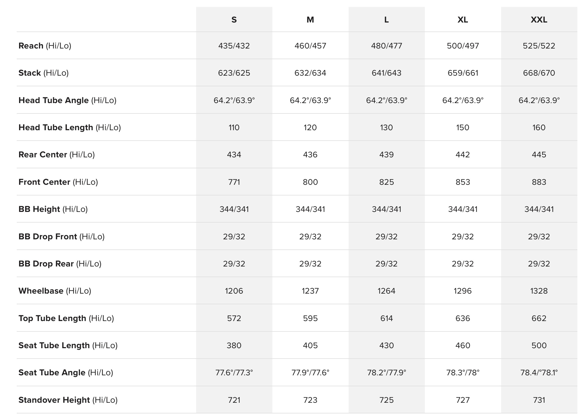 | Measured Chain Stay Length (mm) | 439 (varies by size0 |