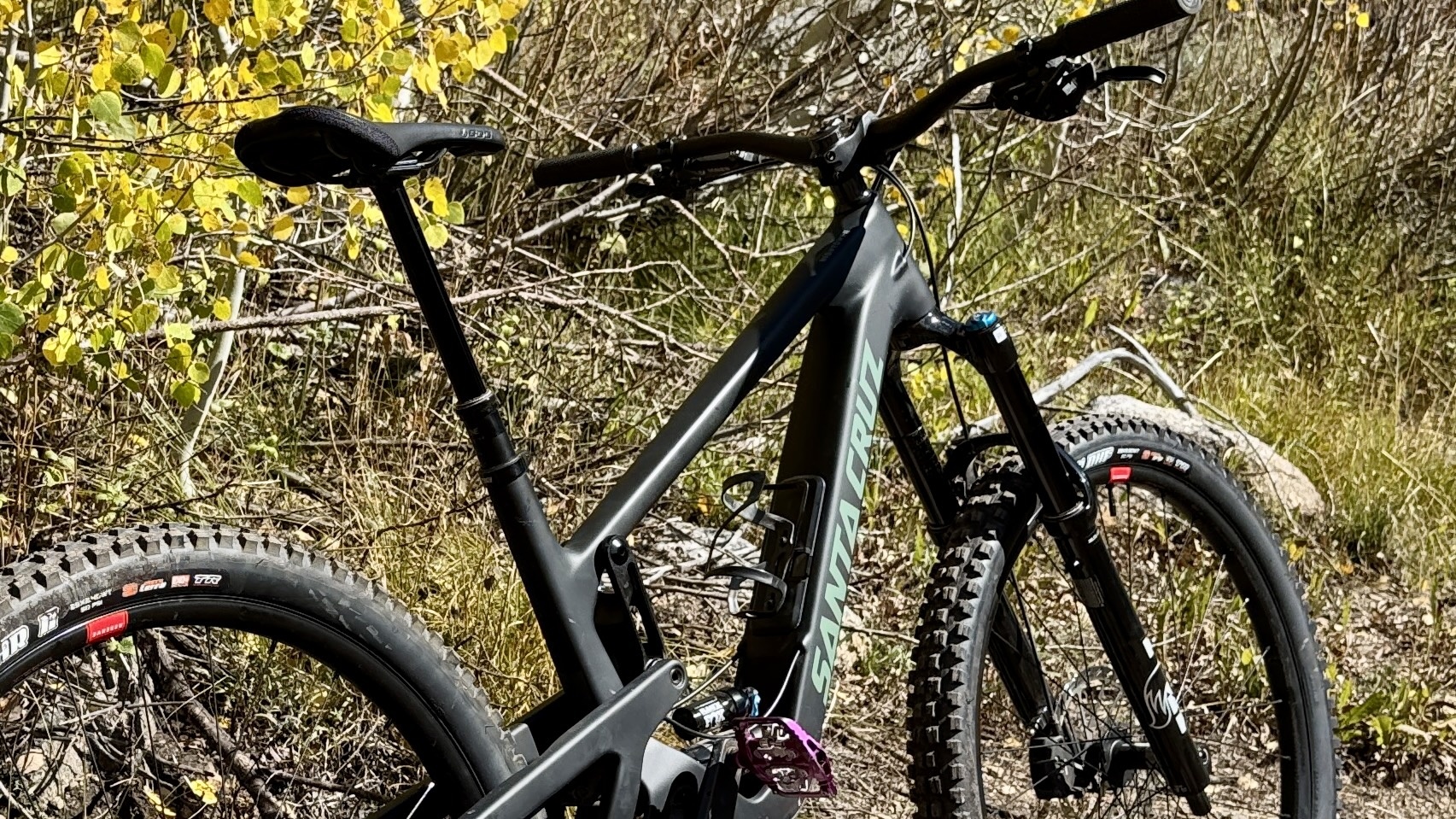 The cockpit is entirely OneUp with innovatively shaped 800mm alloy bars that provide directional flex with 35mm of rise, and the stout 42mm OneUp Enduro stem. A OneUp dropper post provides 210mm of drop on our size Large bike and is amongst our favorite cable-actuated droppers. Reducing its travel is simple, and we've found that extended service intervals keep the post in our bike rather than on our workbench. Santa Cruz Reserve 30 TR Alloy wheels are laced to DT 370 hubs, allowing you to fine-tune the ratchet engagement with aftermarket ratchets. The wheels are clad in Maxxis Minions, a DHR 3C MaxxTerra Exo+ on the rear and a DHF 3C MaxxGrip Exo up front. This feels like an ideal set of rubber for this bike, but riders looking to push the front end harder may want to invest a few dollars more in an Assegai.