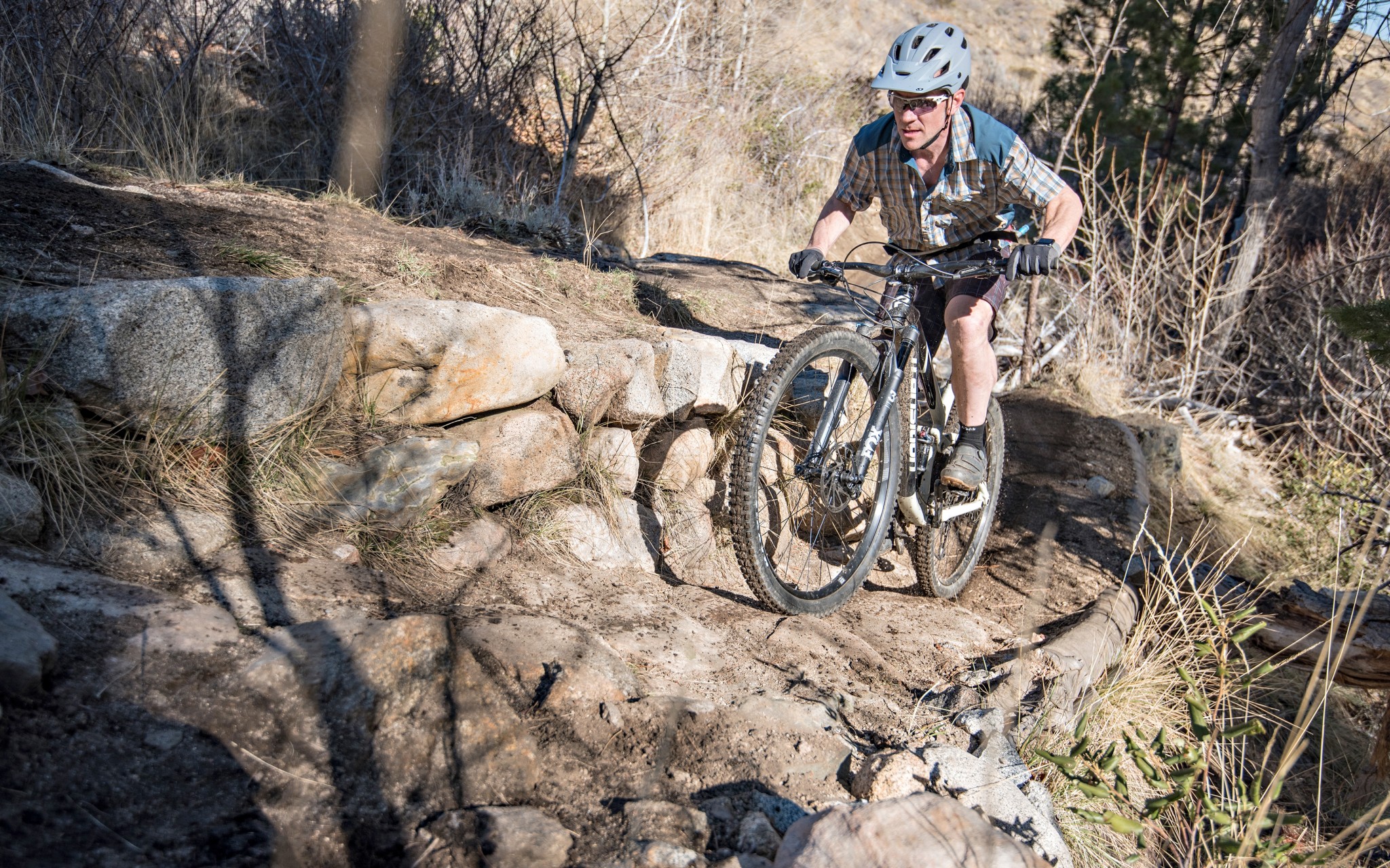 The Giddy Up suspension design works well enough. The Smuggler's suspension feels best pinning it through small-medium rock gardens. The rear end is supple and remains under control when braking through chop. One of our test tracks has a sizeable rock drop with a landing that is easy to overshoot. We blew through the travel surprisingly easily on the Smuggler. The design is more linear than we are used to. Adding some volume bands to the rear shock would likely provide some much-needed ramp-up to counteract the linear feel.