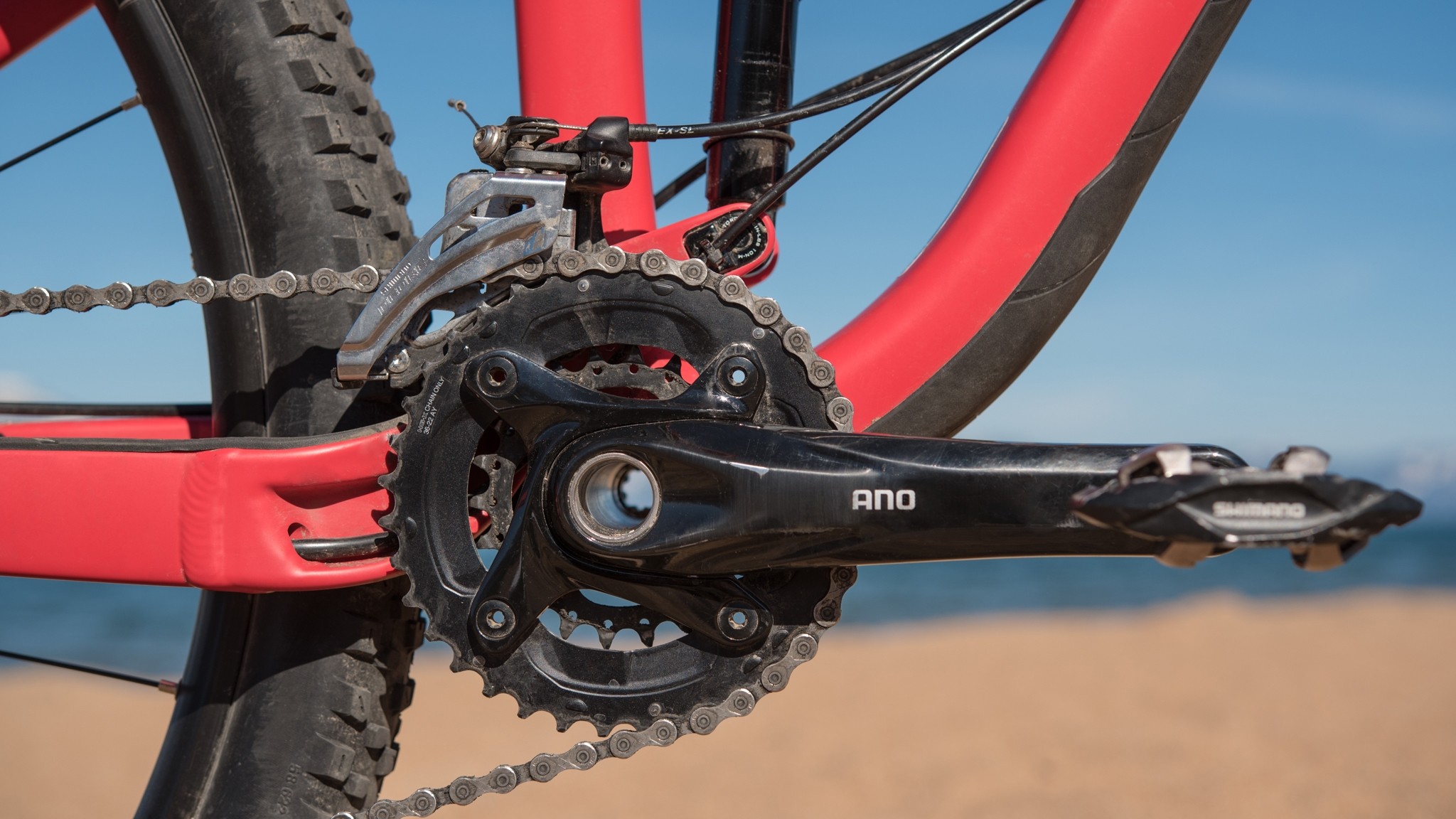 We find the 2x10 drivetrain to be a curse and a blessing when descending. On one hand, there is a much stiffer high gear thanks to a 36 tooth big ring. Thanks to this harder gear, you can put more power down on the downhill and go faster if the trail allows. On the other hand, the gearing is closer together on a 2x10 setup, and multiple testers noted that they had to double shift to get the jump in gearing they desired. It can feel like a lot of shifting. We did not find a significant amount of dropped chains in our testing, but we weren't riding excessively rough terrain.