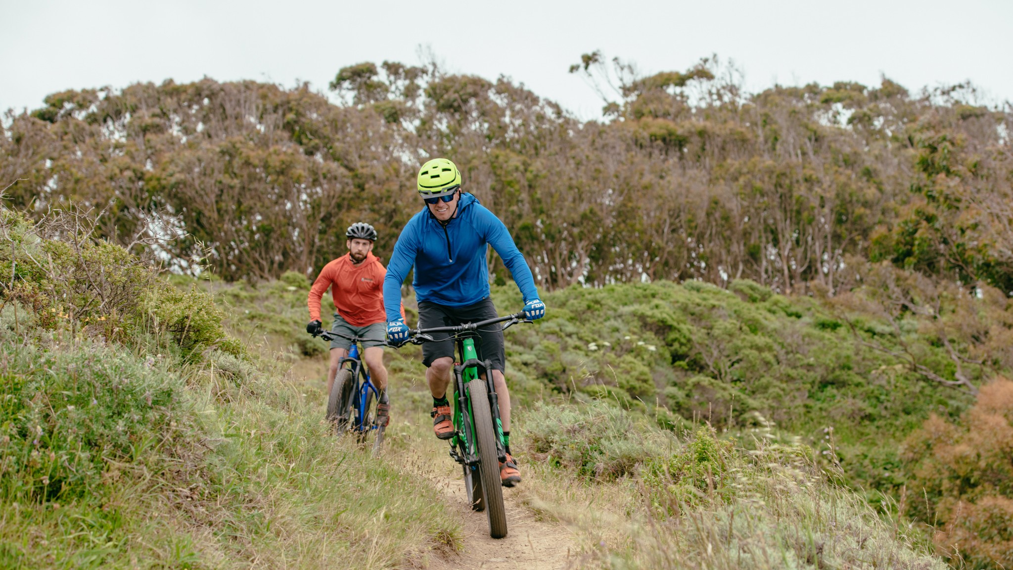 The Bontrager Chupacabra 29 x 3" tires don't have the telltale bite of a cornering knob that so many bikers appreciate. The tread keeps rolling towards the sidewall of the tire, gripping the dirt at almost every angle. This is a great feeling for imprecise beginners and is functional enough for more skilled riders to appreciate.