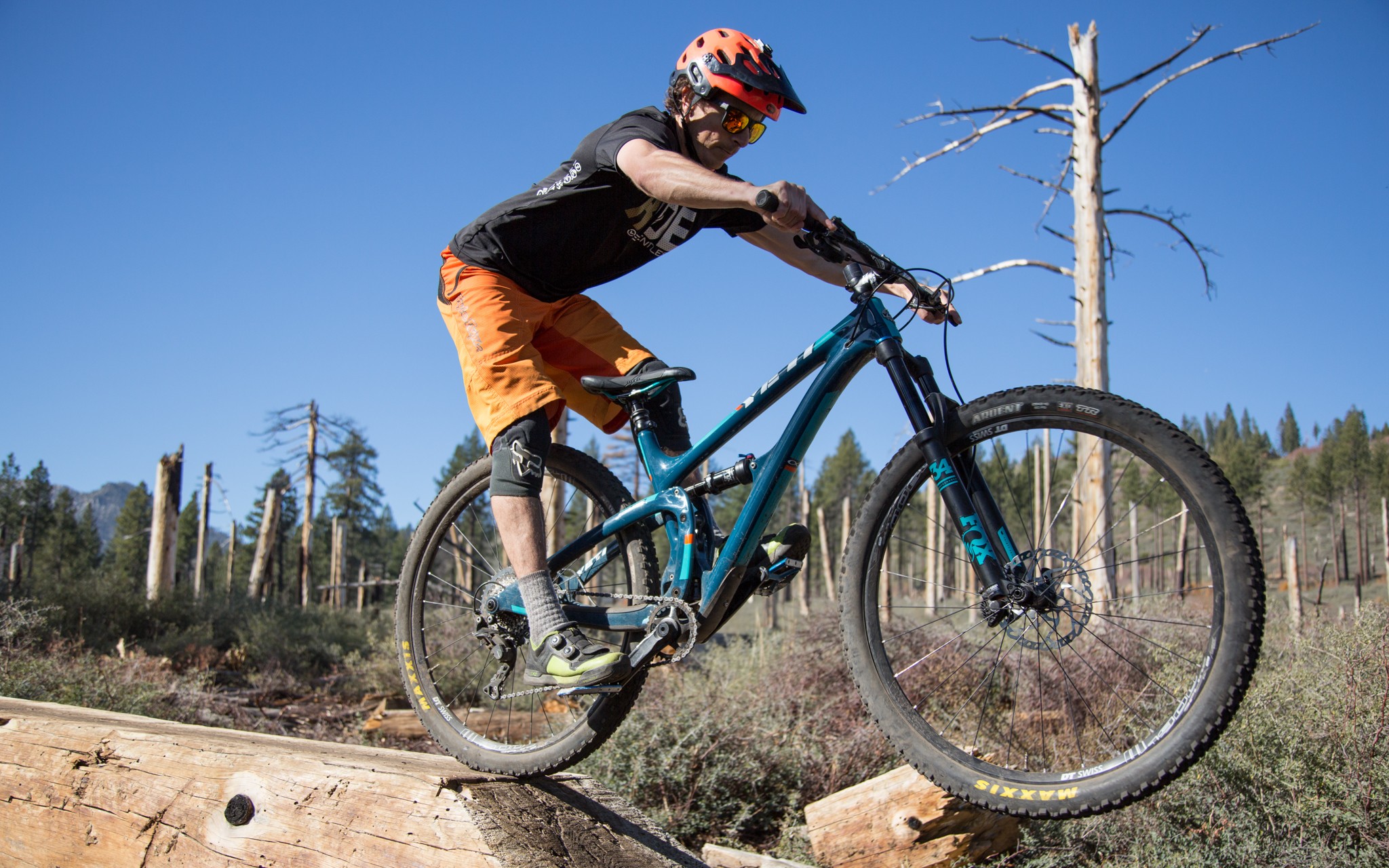 A three-position Fox Float DPS shock is mounted on the rear of this spritely short-travel sled. The shock performed admirably but testers found it required us to run a far higher air pressure than expected. Yeti recommends 27% sag. This surprised us in a day when 30-35% sag is commonplace on a trail bike.
