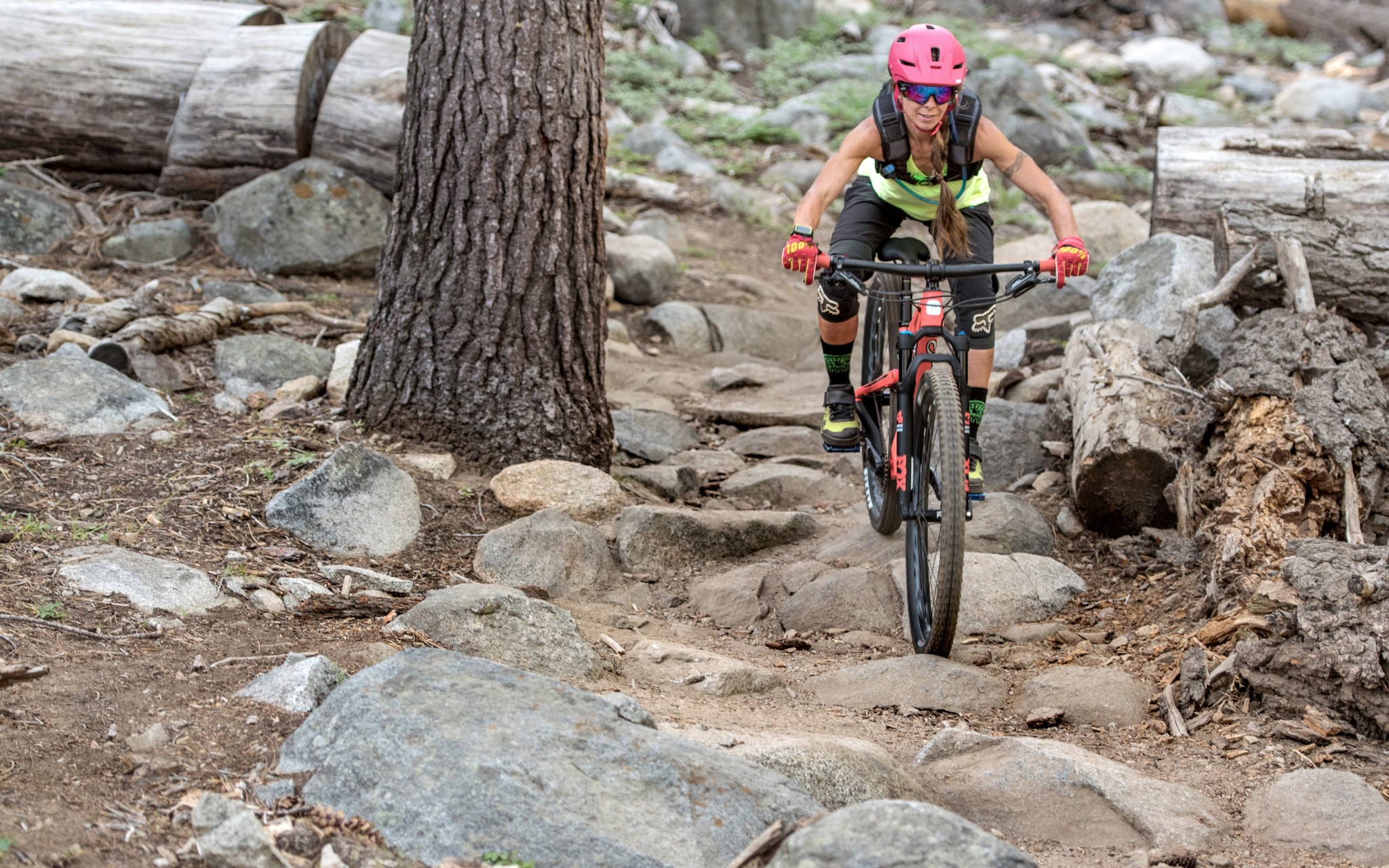 Technical climbs don't stand a chance when the Joplin takes the stage. The performance of this bike is impressive as it steadily creeps and crawls uphill like a mountain lion hunting its prey. In steeper sandy sections of climbing, the Joplin also performed in such a way that if we found ourselves in a standing position, there was little to no energy loss. That said, the traction was questionable due to the Maxxis Ardent EXO TR tires. These are faster rolling tires designed for XC and endurance, not superior grip. The Joplin blasts its competition away at the start gate on mellower climbs. She gets the whole shot and then powers on with a consistent pace keeping her eye on the prize.