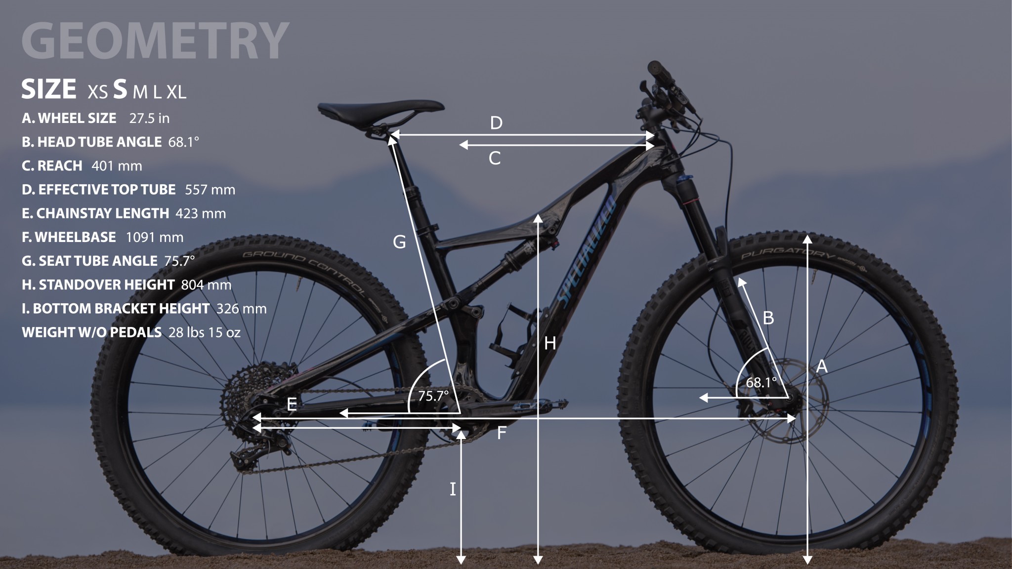 Our small Specialized Women's Camber Comp Carbon comes with a carbon front triangle and an aluminum rear end. The 2018 Women's Camber's geometry is steep, with a 68.1-degree head tube and a 75.5-degree seat tube. This sets you up in an upright position that is okay for climbing but tends to produce a confidence-sucking stance on the descent. While the measured 401mm reach isn't extremely short, the 567mm top tube is, the shortest in the test by a wide margin. As a result, the cockpit is the least comfortable in the test. The 1091mm wheelbase is kept compact thanks to its super short 432mm chainstays and steep geometry. The bike has the lowest bottom bracket in the test with 326mm of clearance and weighs 28 pounds and 15 ounces.