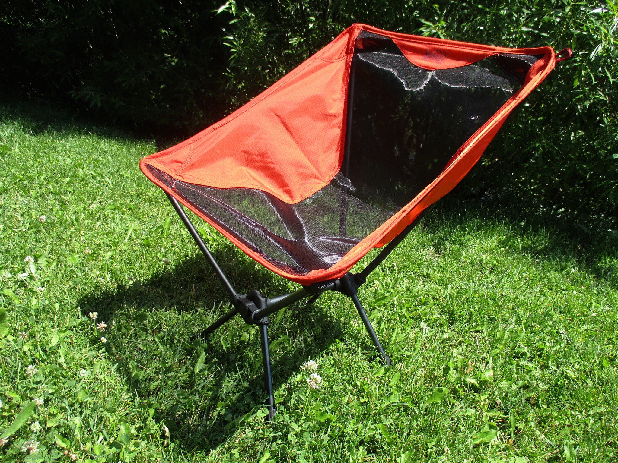With this update, REI has switched the materials, no longer using the see-through mesh for the chair fabric. The ripstop nylon has been replaced by bluesign-approved ripstop polyester. They've shaved one ounce off the weight, and the seat has been redesigned slightly with the intention of eliminating tension zones and providing more comfort. It also appears the stash pocket has been eliminated. Since we haven't tested the redesigned chair yet, we can't vouch for any of the updates, and the review to follow pertains only to the previous model. We are, however, linking to the updated Flexlite, since the old model is no longer offered.