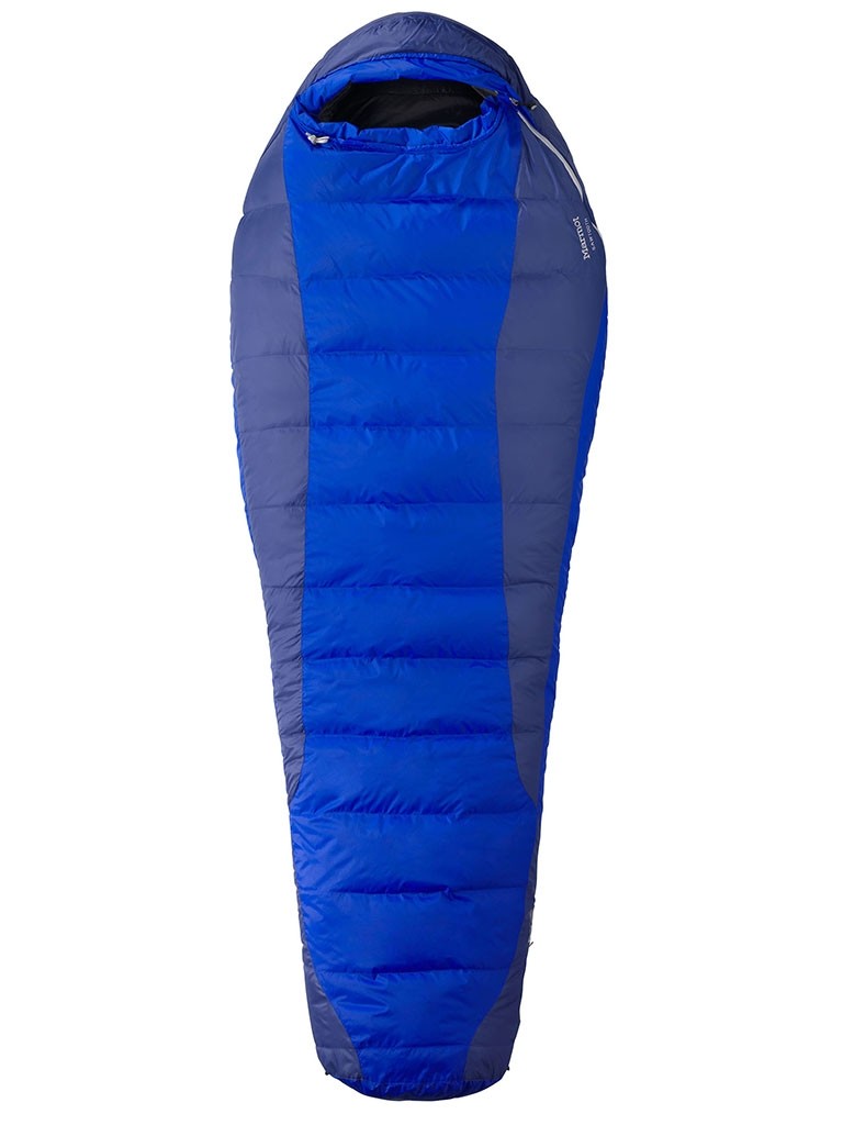 The Marmot Sawtooth is an exceptionally warm 15 degree down sleeping bag. It has smart features and is comfortable but it is slightly heavy and does not pack down as small as other down bags. The water resistant down is appealing, but for a lower price point and guaranteed defense against dripping tents and humid climates we prefer the Mountain Hardwear HyperLamina Flame, a lightweight synthetic sleeping bag which won one of our Top Pick awards.