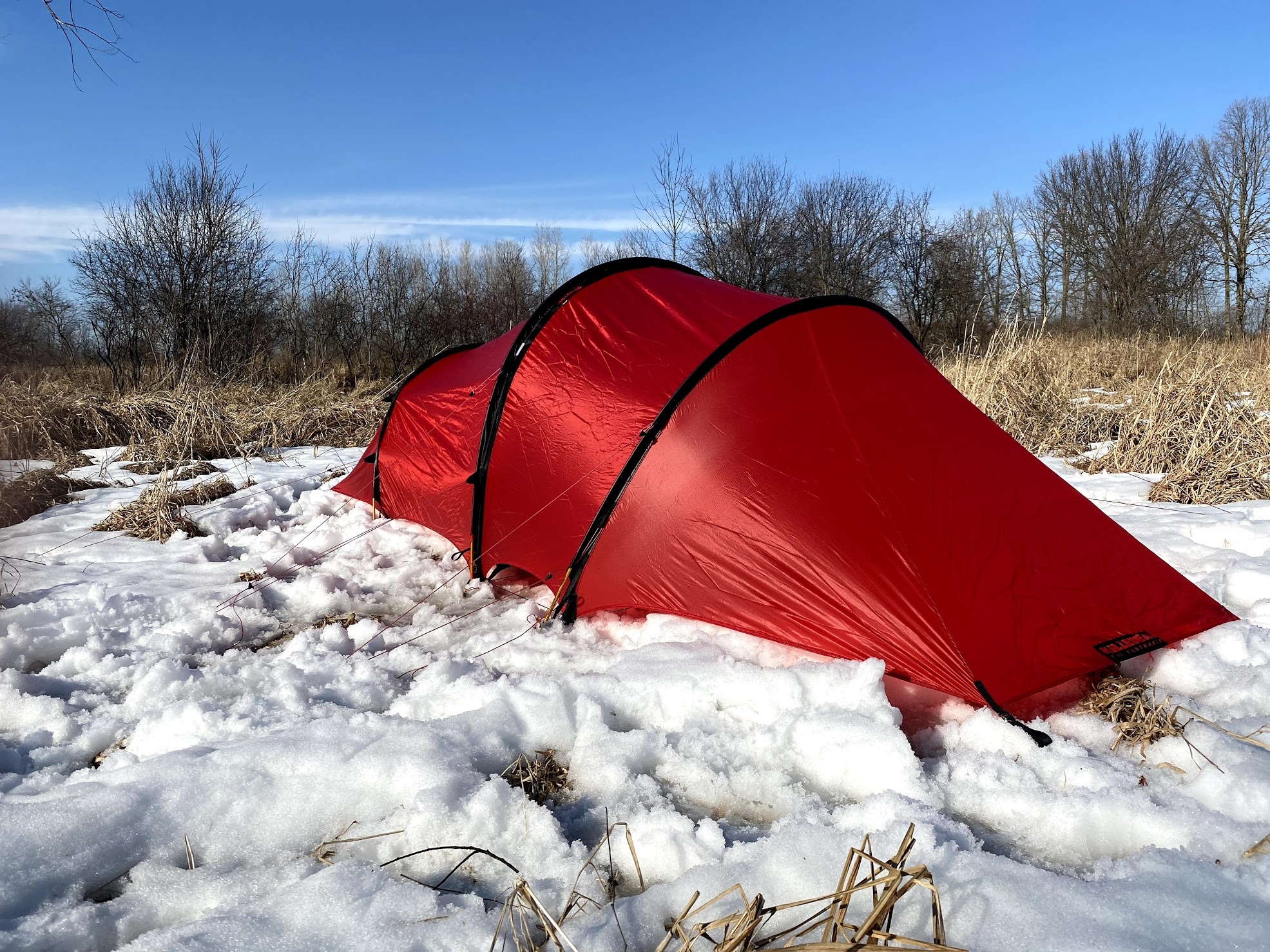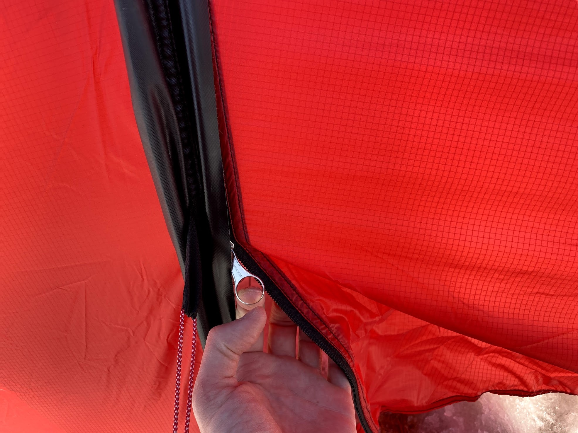 This outside first approach keeps the inner tent drier if you are forced to pitch during a storm. It requires a lot of dexterity, though, which can be especially difficult in cold weather. The guylines come pre-attached, which is a big plus, but there is still a lot of cord to manage.