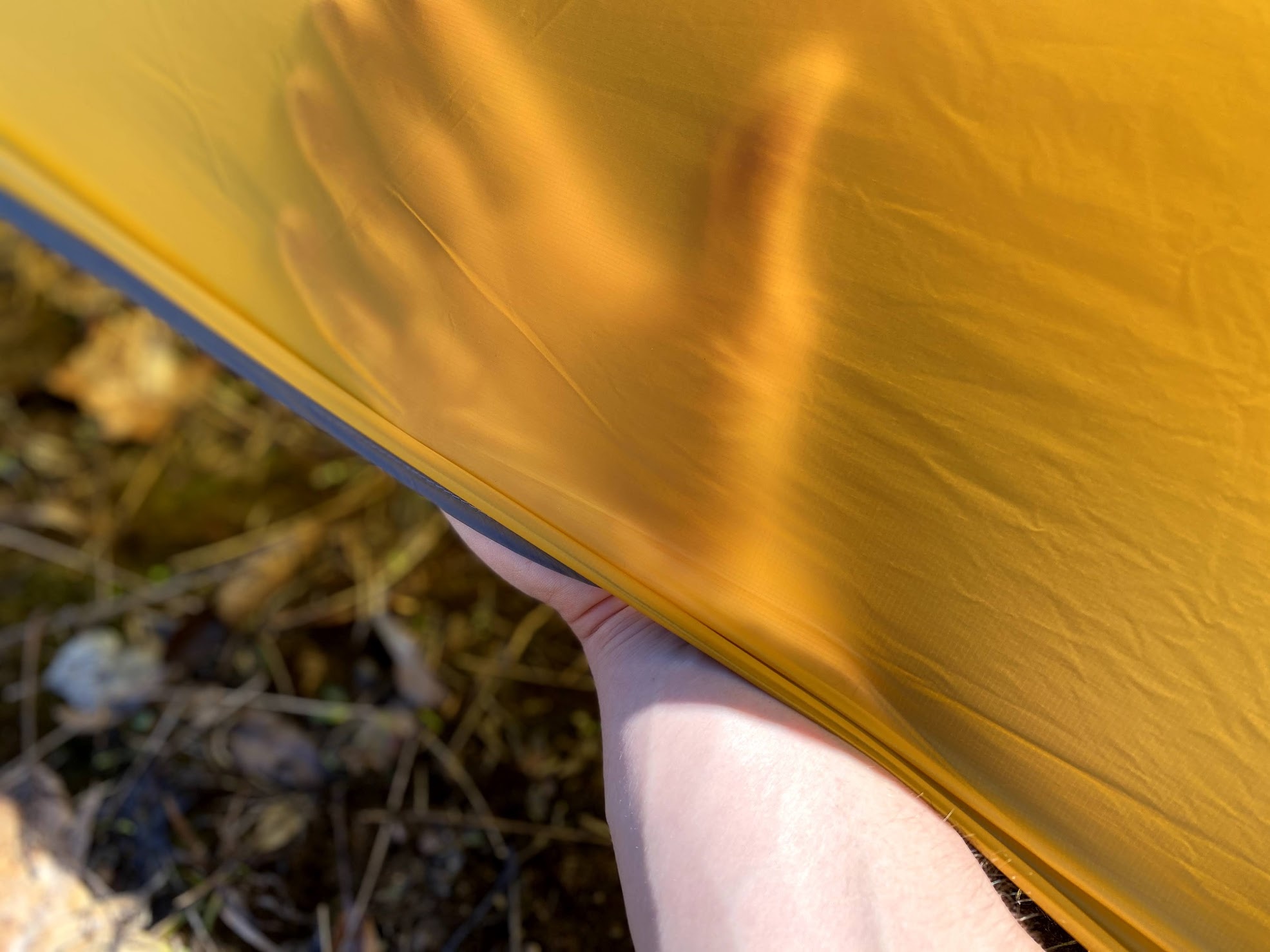 This goes hand-in-hand with weight, but this tent packs down very tightly as well. Its 10D floor and 7D fly fabric both feel a little like tissue paper. Both parts are thin enough that you could stuff one each into a water bottle pocket if you wanted to.