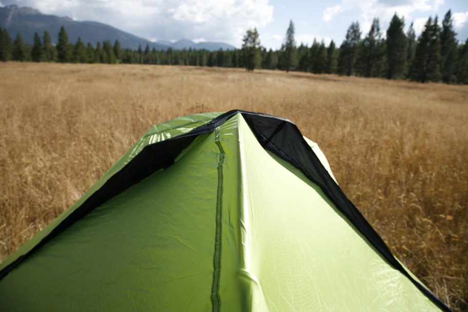 The Obi's two vestibules are roughly as small as many other lightweight tents and provide enough space to cover a pair of shoes and a small pack. One side pocket and ceiling pocket make it easier to find a headlamp at night. Clips attach the inner tent to the outer tent to increase interior volume. The two small vents at the top of the door may help slightly to combat condensation.