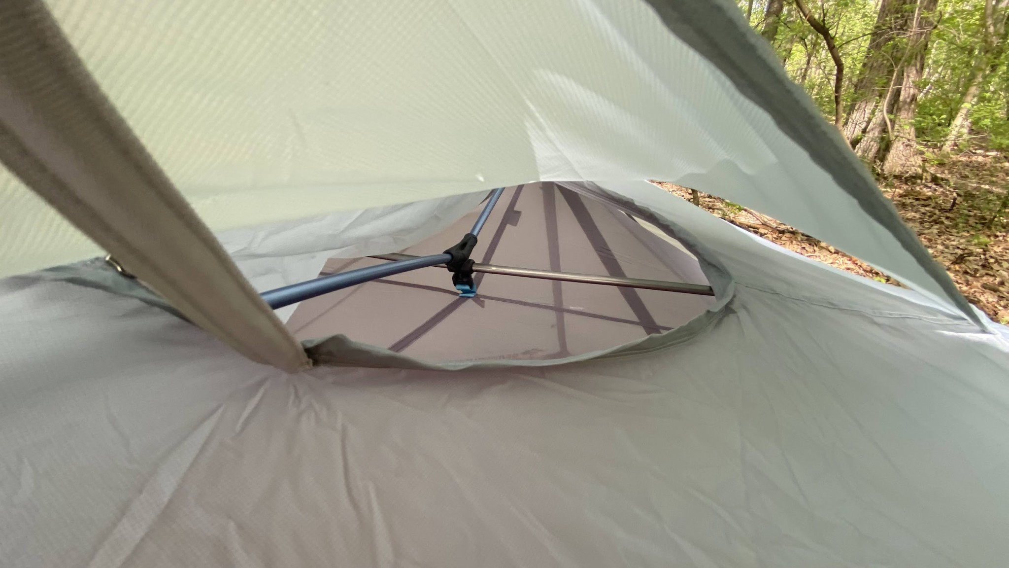 The pole bag also comes with an opaque plastic insert. This unit can be snapped to the ceiling to create the ultimate light diffuser. Once installed, sliding one or two headlamps into the bag creates a pleasant, even light throughout the tent. We are also big fans of the large double-side doors. The curved zippers make it easier to open with one hand, and the size of the opening itself is generous, ensuring that it is easy to enter and exit the tent.
