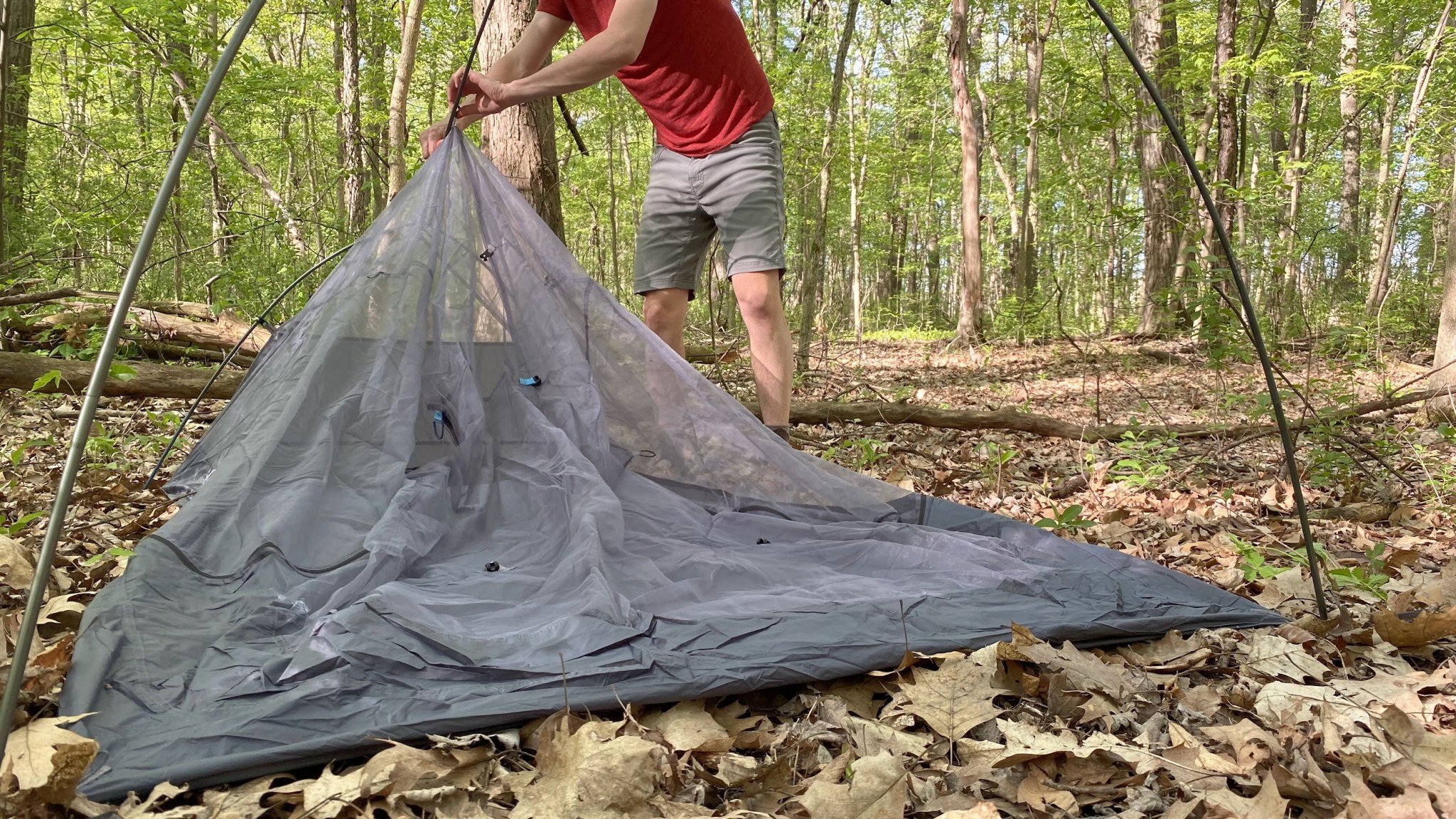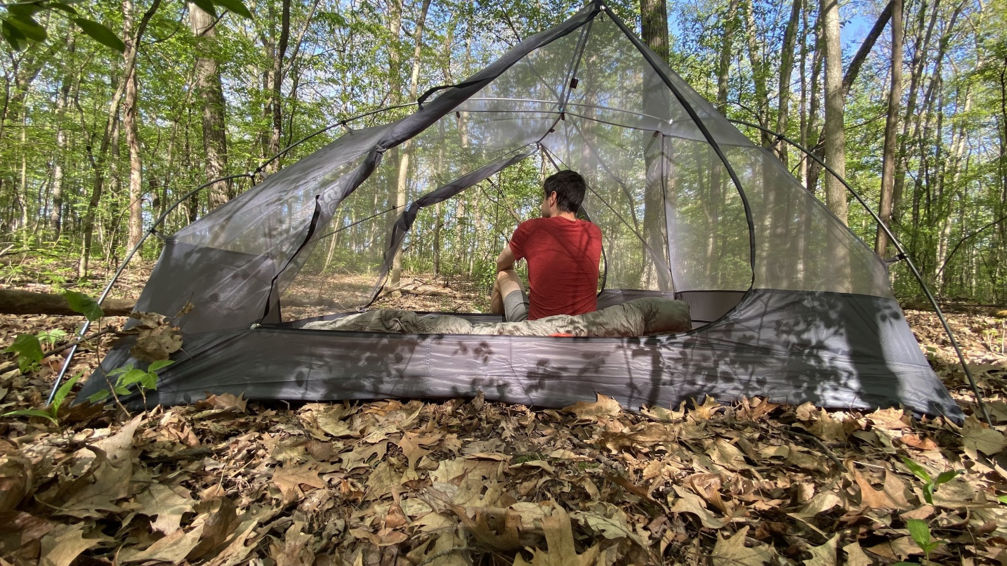 This model's interior offers more space than its dimensions initially reveal. Its 84-inch length and 53-inch width (tapering to 43 at the foot) are sufficient for two sleepers. However, what enables the Telos to stand out is the steepness of the walls and peak height volume. The unique design of the crossbar ensures that the highest point of the canopy is in line with the plane of your body when you sit up. It seems like a small thing, but it means that sleepers don't have to reposition their body to take advantage of the space when sitting up.