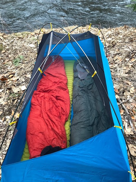 This tent's primary drawback is the single, side D-door, which drives us just a little bananas. It's large, which is nice, but you are inevitably forced to play leapfrog with your tentmate to get out if you are on the far side of the tent. The design is especially problematic during rainstorms; if someone is trying to enter when another person is already in the tent on the near side, there is typically an inconvenient doorway shuffle that means water is going to drip inside. We also found that someone trying to get out in the middle of the night usually bumped or stepped on the other person on their way out-- a non-issue with other door configurations.