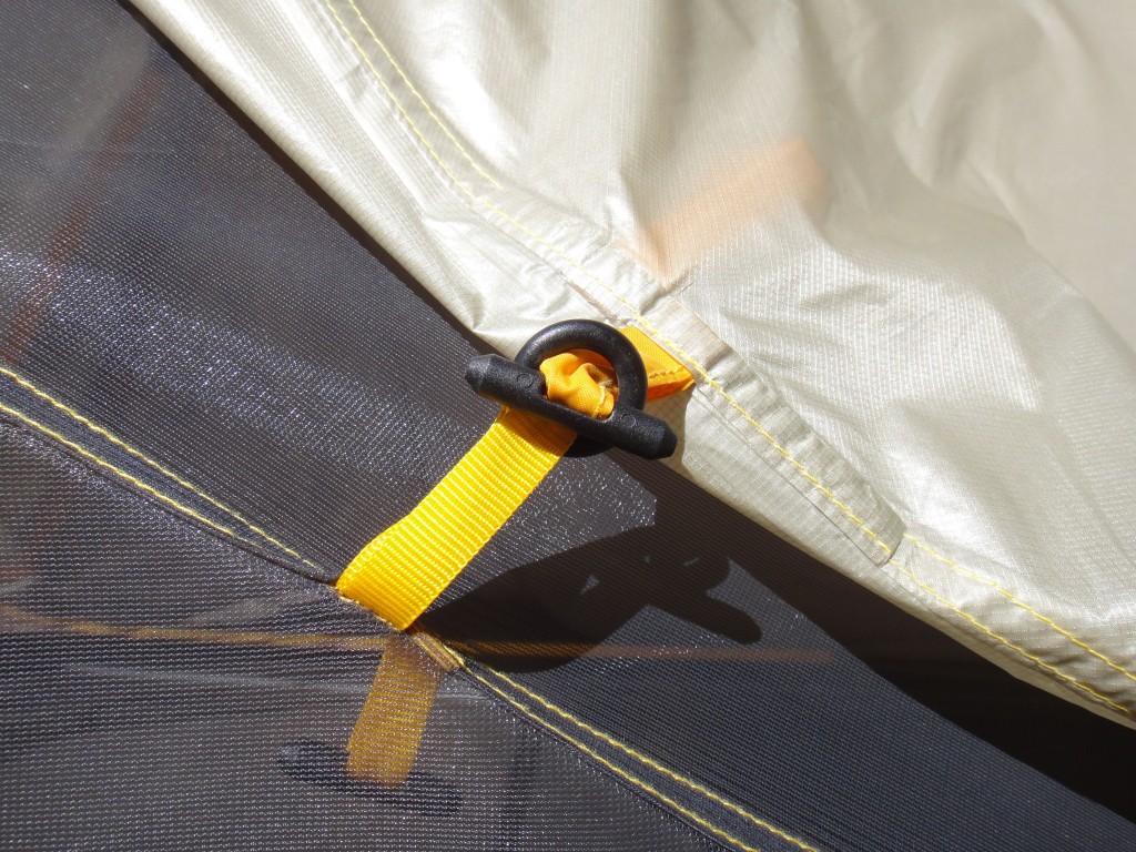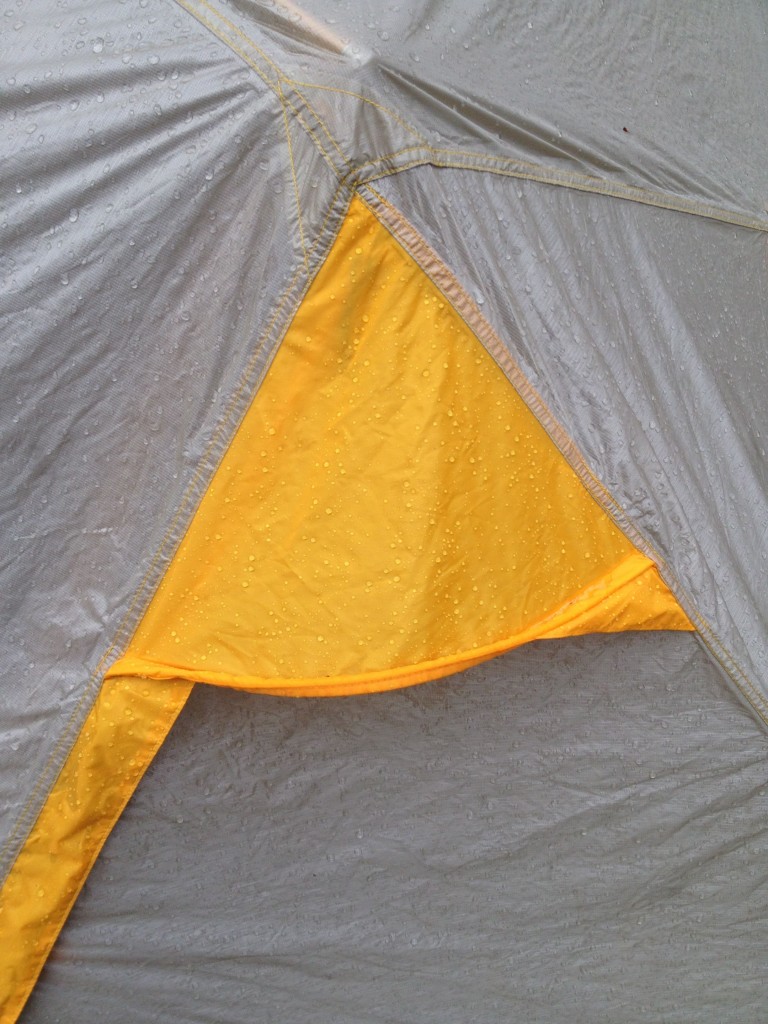 The North Face uses high quality 70D silicone and polyurethane coated nylon for its fly materials. This tent's materials are more durable than the Big Agnes Copper Spur UL2 and could stand up to abrasion much better than the Mountain Hardwear SuperMega UL 2. However, we discovered one issue with its construction. The attachment points where the body connect to the fly are small strips of fabric glued to the inside of the fly. We discovered that after a few days of being pitched in strong winds and sunny conditions, a strip simply fell off the inside of the fly. This is a design flaw that can be easily addressed if TNF is willing to put a few stitches in.