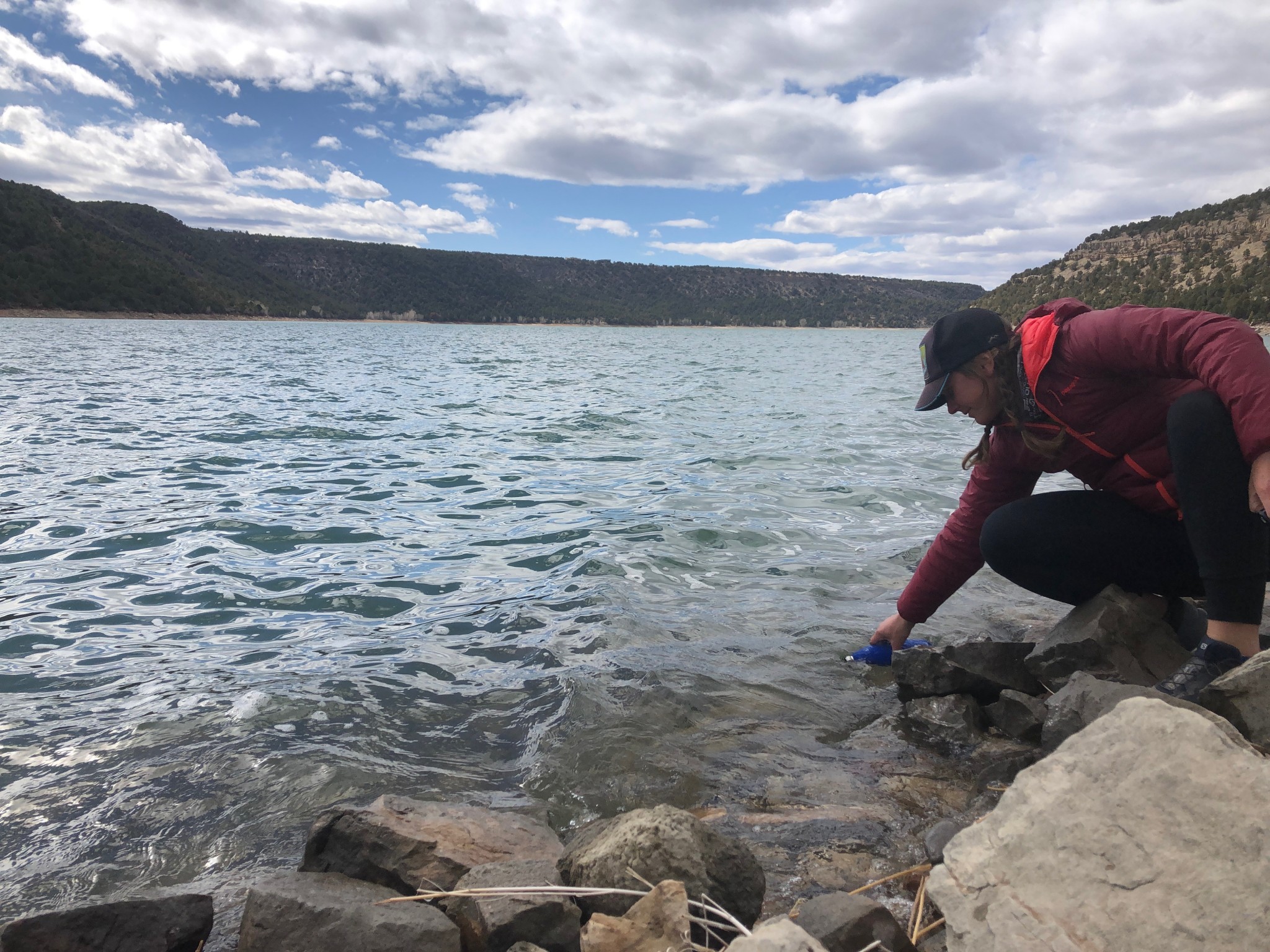 The shorter design actually fits well under most sinks, and it can scoop up water from deeper sources with ease. It's also a great companion while out on a fishing or any type of boat-based trip (it has an IPX7 waterproof rating). The downside is you need to be able to reach the water source to collect from it. Make sure you collect from the top of the water column to avoid particulates, as this bottle can't filter those out. Or bring a handkerchief along as a prefilter (with an extra bottle) if you know you're going to come in contact with them.