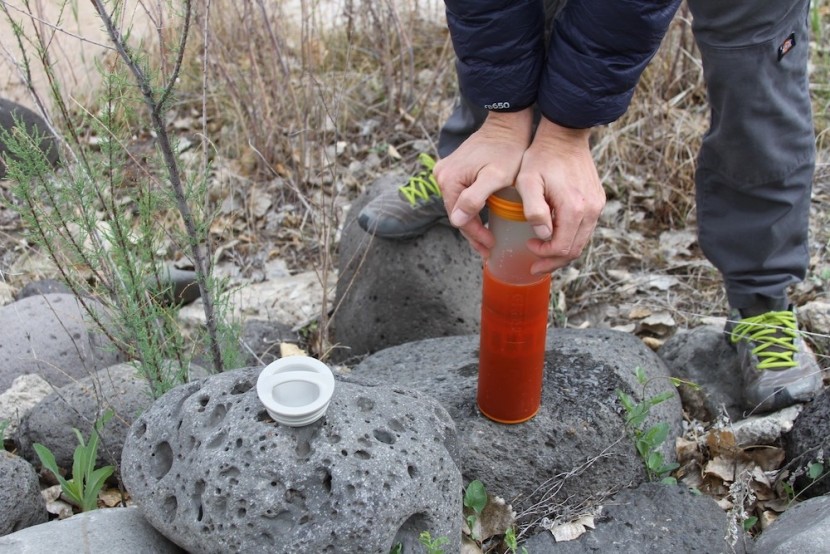 Grayl does claim that this particular system can clean water at a rate of 15 seconds per 16 oz or 2 minutes per liter if you don't count the time to refill in between. We did three different tests in clear water, just at the kitchen sink at home. Prior to this, we followed all online advice to ensure that the system was set up correctly.