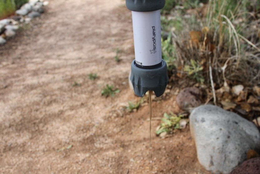 The filter also has a natural way of telling you that it's no good anymore. When the backflush doesn't work, it means that the natural fibers inside are clogged with captured material, and it's time to buy a new filter. Overall, maintenance is way easier than taking the whole thing apart and scrubbing it clean. That said, if you're adventuring in a place with lots of sediment like the Colorado River, or anywhere in the desert for that matter, be sure to let the sediment settle out before filtering; if you don't, this will clog the filter, leaving you in a predicament that could be dangerous.