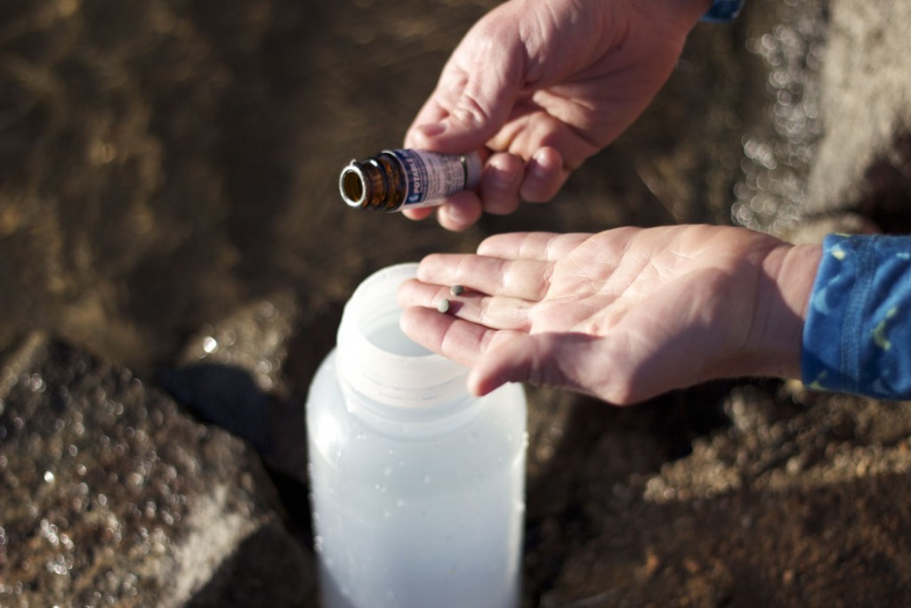 Set up is easy. Get two tablets per liter out of the jar and drop them into the vessel that needs treatment. You will need to collect your water first, so select a storage vessel that can access both small and large water sources. If your water source is silty or full of sediment, filter it through a fabric before or after treatment.