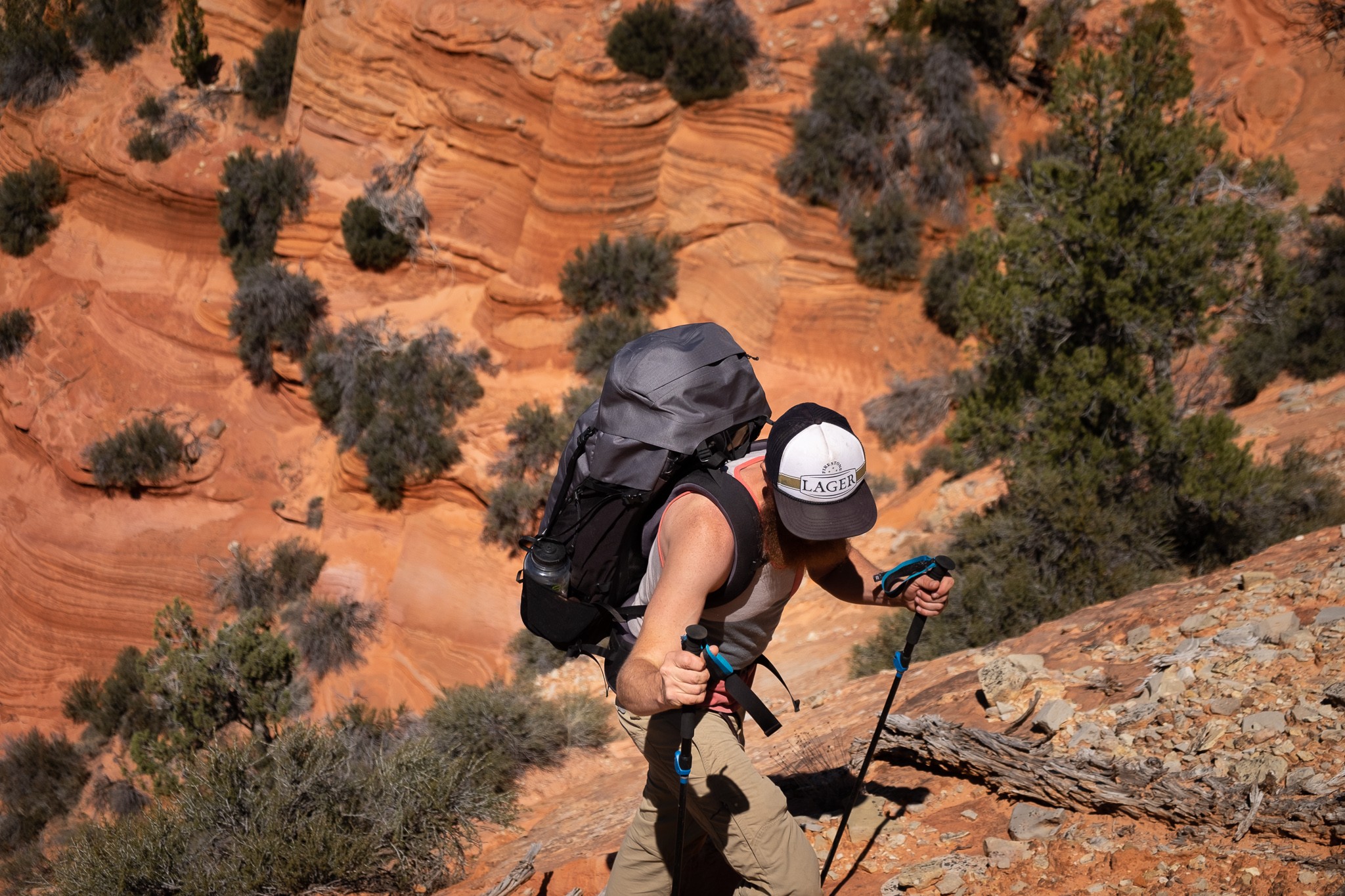The Bora AR 63 is hydration bladder compatible and features two snug side pockets for water bottles. Nalgene bottles seem to be the optimal size. We appreciated the small zippered pocket with a key holder on the inside of the pack. This pocket is great for car keys or other items we don't want to lose and helped us stay organized when we left the primary lid behind.